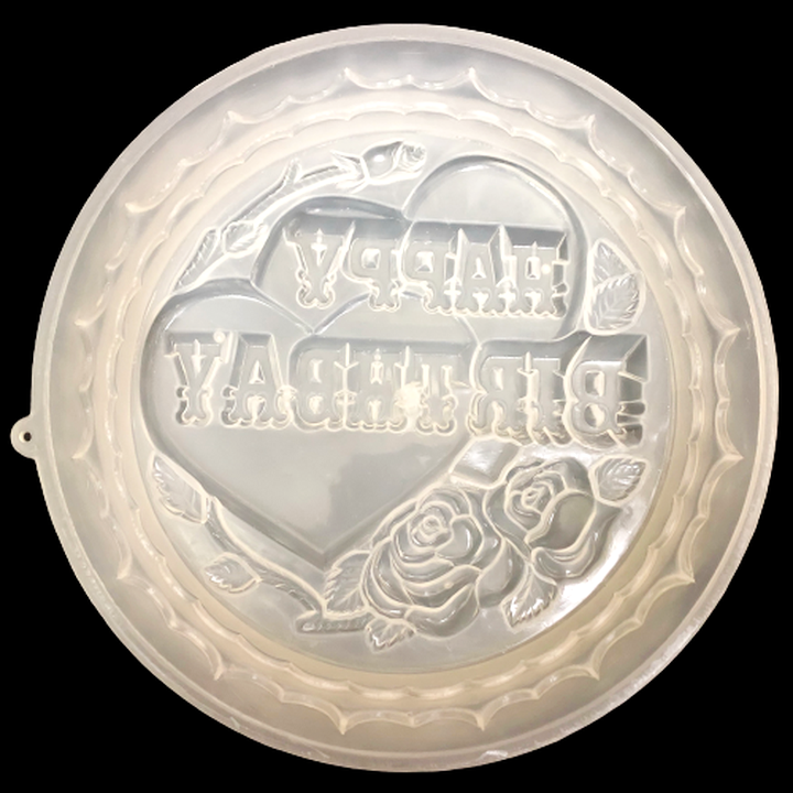 Mua tại TiktokKhuôn rau câu sinh nhật trái tim đôi Happy Birthday – Khuôn hình tròn loại 25 cm - Mã số 1019