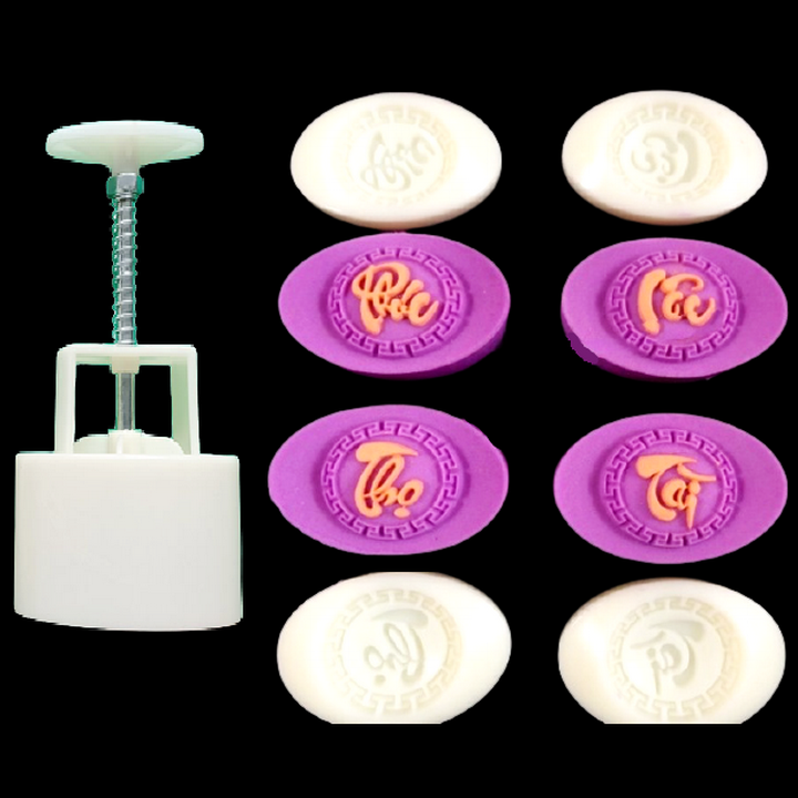 ✨Khuôn trung thu lò xo, khuôn ép xôi 4 thỏi vàng Phúc Lộc Thọ Tài - Mã số 1024