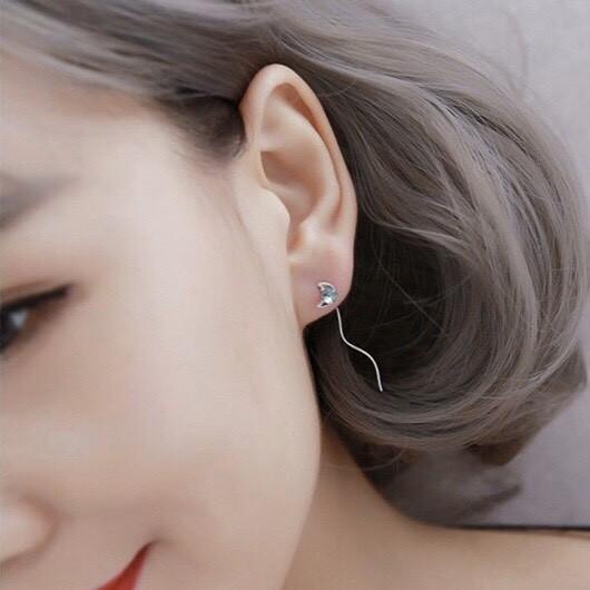 • Khuyên tai bạc 925 sao xanh thả xích độc đáo bắt mắt lung linh Dế Bạc - K5212