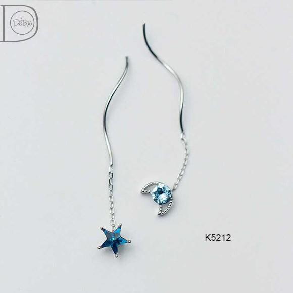 Khuyên tai bạc 925 sao xanh thả xích độc đáo bắt mắt lung linh Dế Bạc - K5212