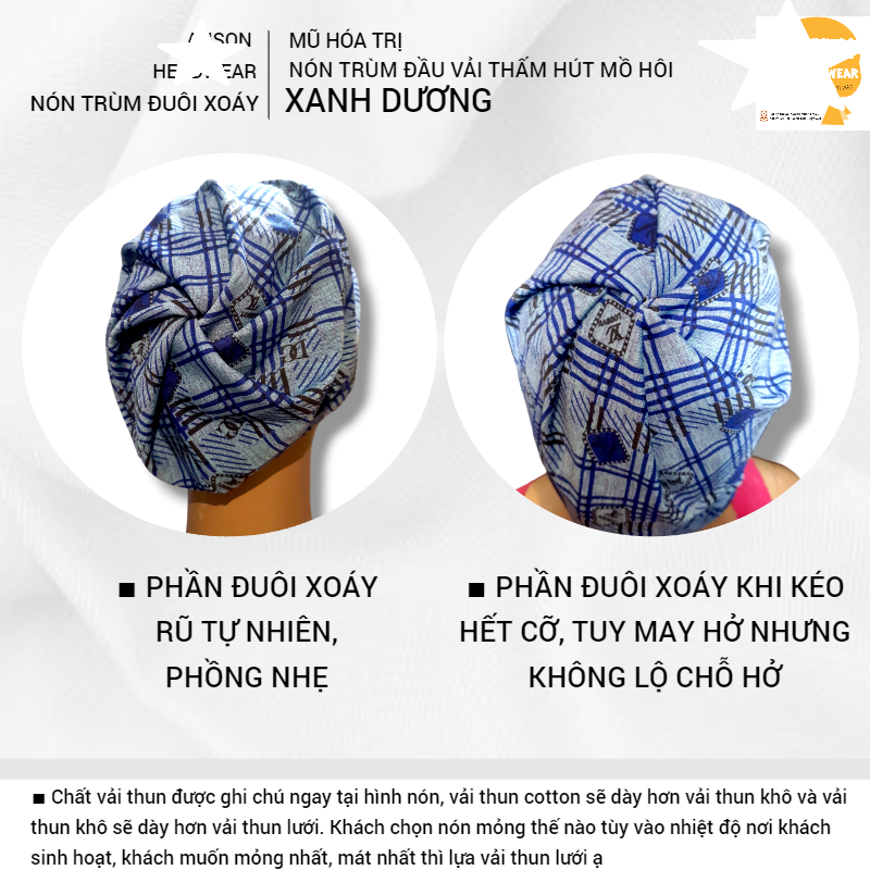 [o]TÊN SẢN PHẨM: [KIỂU TRÙM ĐẦU ĐUÔI XOÁY] Nón vải trùm đầu, bằng vải mát, beanie hat, cancer hat, chemo hat, mũ vải cho bệnh nhân ung thư dễ đội