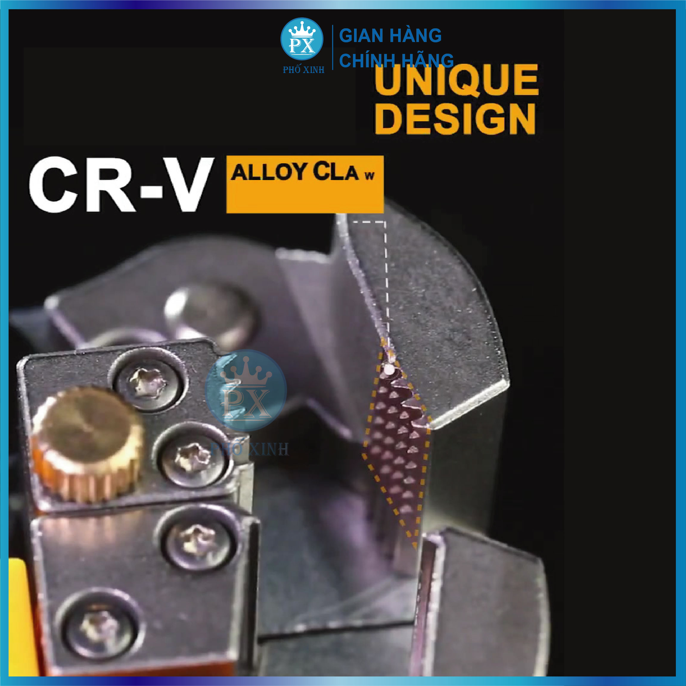 - Mũi nhọn xoắn đàn hồi, vặn mạnh mũi trở lại vị trí cũ - Mũi kìm cong 40°, nhọn điểm - Mặt trong nhám song song, gắp kéo cáp chắc chắn và không bị tuột