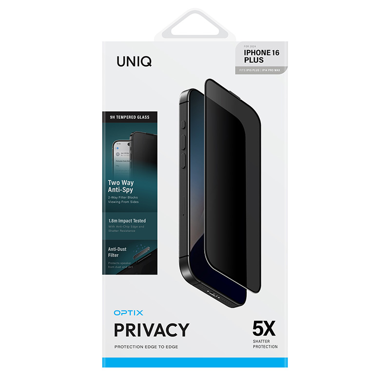 1. Kính Cường Lực Uniq Optix Privacy Cho iPhone 16/ 16 Plus/ 16 Pro/ 16 Pro Max