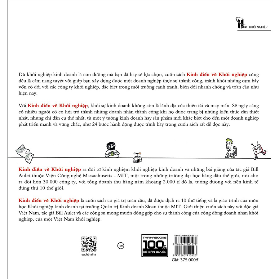 Kinh điển về Khởi nghiệp ra đời từ kinh nghiệm nhiều lần khởi nghiệp kinh doanh và những bài giảng của tác giả Bill Aulet thuộc Viện Công nghệ Massachusetts - MIT, một trong những trường đại học hàng đầu thế giới, nơi cho ra đời hơn 30.000 công ty, với tổng doanh thu hàng năm khoảng 2.000 tỉ đô la, tương đương với nền kinh tế đứng thứ 10 thế giới.