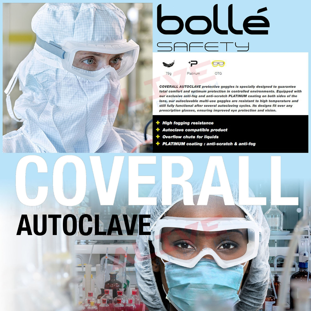 Kính bảo hộ COVERALL AUTOCLAVE được thiết kế đặc biệt để đảm bảo sự thoải mái tuyệt đối và bảo vệ tối ưu trong các môi trường nhạy cảm và vô trùng như nhà thuốc, vi điện tử và phòng phẫu thuật (COVERALL AUTOCLAVE protective goggles is specially designed to guarantee total comfort and optimum protection in sensitive and sterile environments such as pharmacies, micro-electronics and operating theatres.)