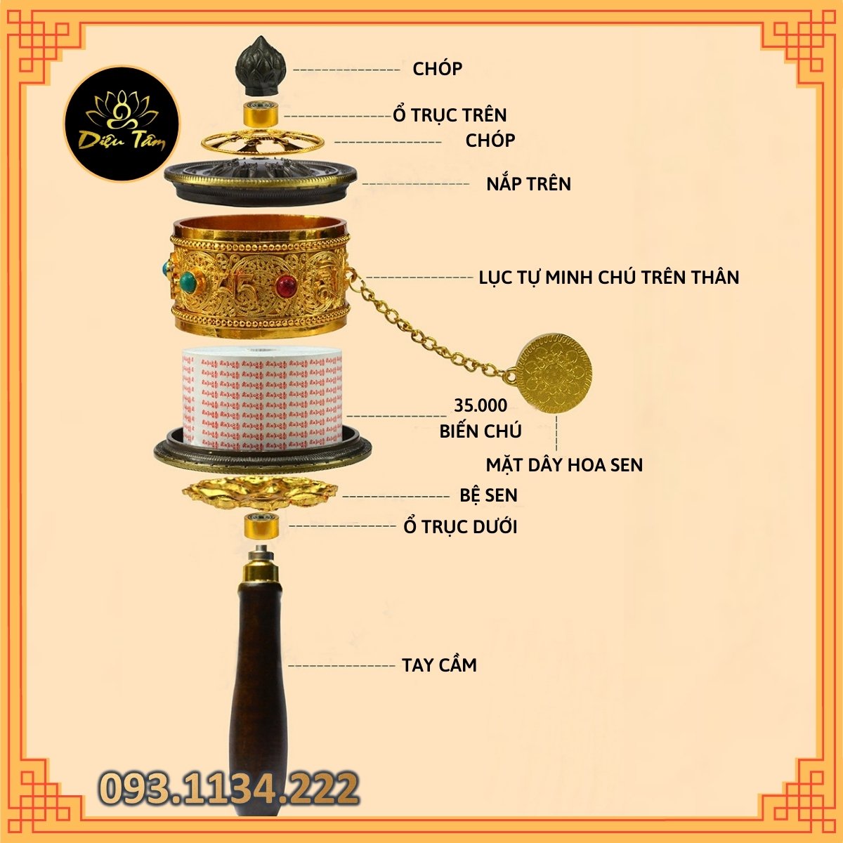 Quy trình sản xuất : Handmade(thủ công) với 36.000 lần thần chú Om Mani Padme Hum