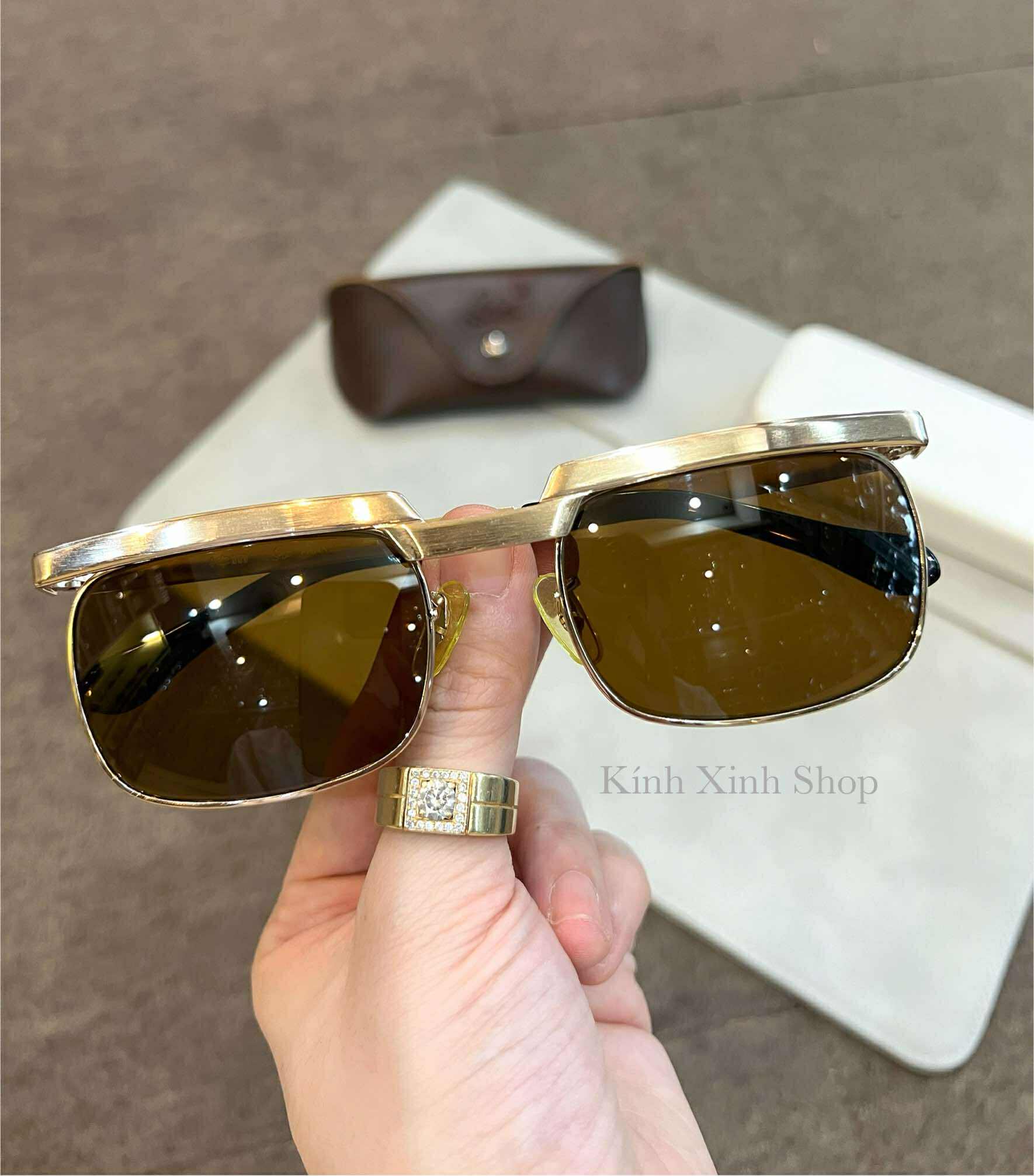 ✨Kính râm nam Solex Mắt thủy tinh cường lực chống vỡ gọng Titanium mạ vàng 14K