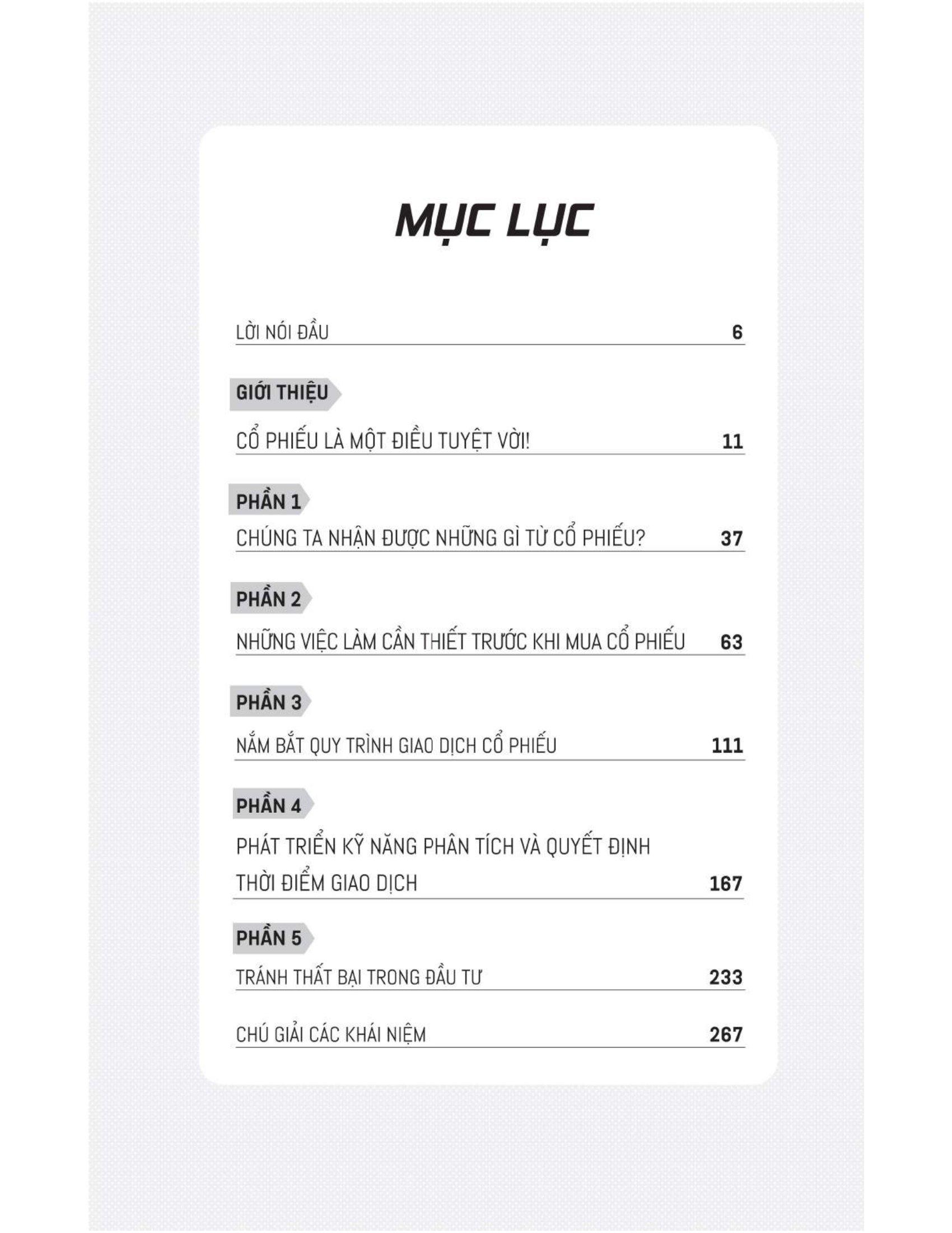 Cuốn sách giải thích mọi thứ - từ những điều cơ bản về lựa chọn tài khoản, lựa chọn mã cổ phiếu phù hợp đến những điểm then chốt khi tiến hành phân tích thị trường. Bạn sẽ được hướng dẫn về ý nghĩa của các chỉ số quan trọng, cách thực hiện phân tích cơ bản, phân tích kỹ thuật, đọc đồ thị hình nến… để tiến hành mua và bán cổ phiếu một cách kịp thời và hiệu quả, nhằm tối ưu lợi nhuận cũng như hạn chế tối đa các rủi ro trên thị trường.