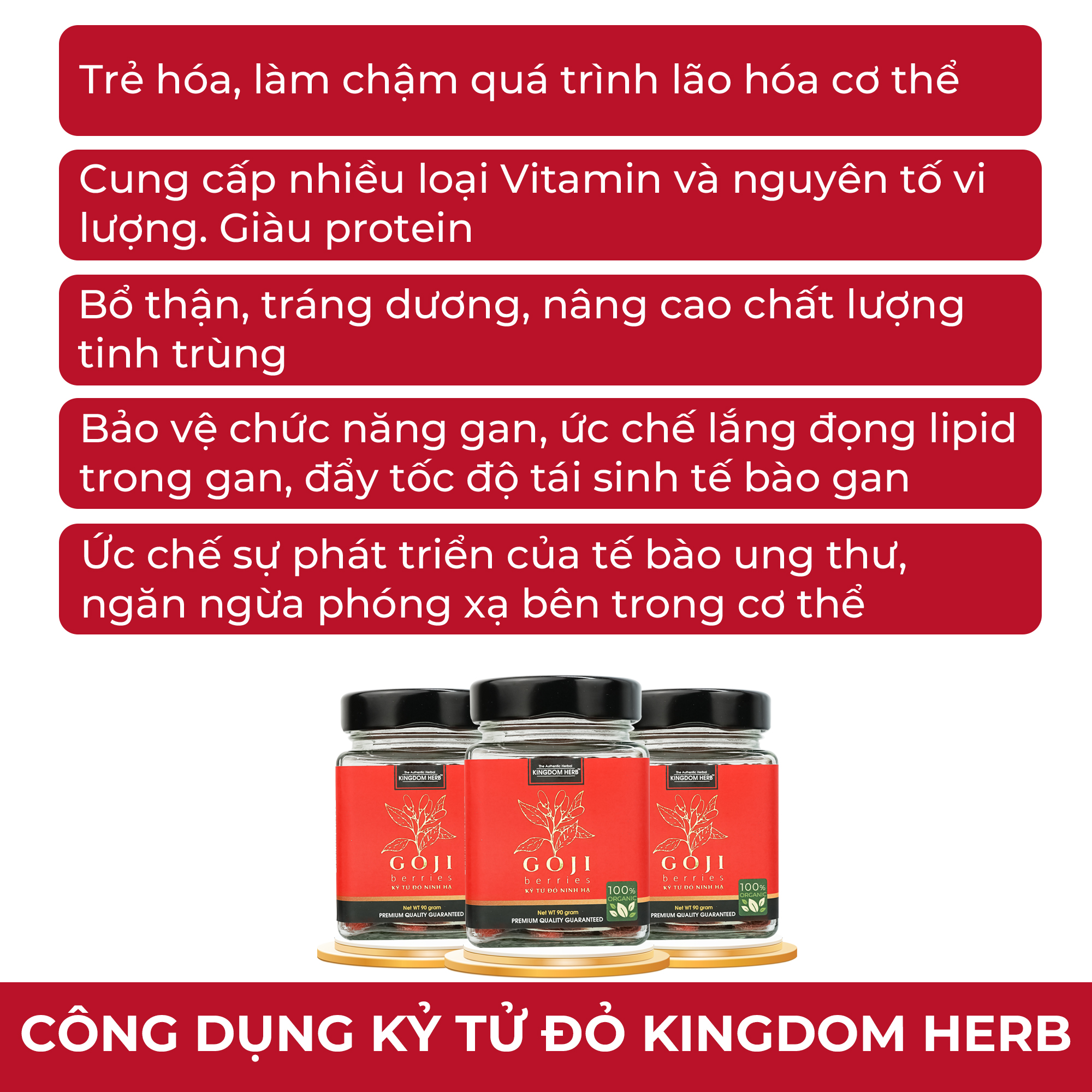 - Mã vạch sản phẩm: 8933064141025 Công dụng của kỷ tử đỏ Ninh Hạ Kingdom Herb: - Giàu protein