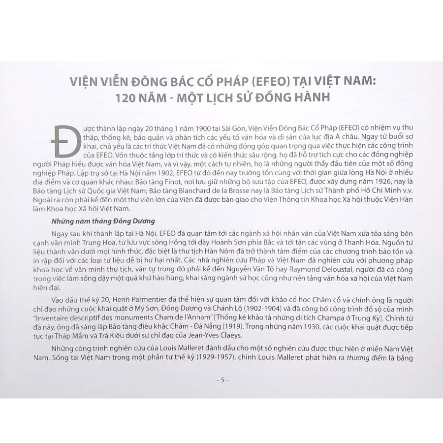 Phần đầu của tập sách giới thiệu về lịch sử hình thành và những tư liệu quý giá qua thời gian được lưu trữ kỹ lưỡng bởi Viện Viễn đông Bác cổ (EFEO) Pháp qua những chuyển biến của lịch sử. Những hình ảnh khắc sâu trong tim, về khoảnh khắc trong quá khứ, xuyên suốt ở ba quốc gia Việt Nam - Campuchia – Lào được tái hiện vô cùng sinh động, hiện thực qua từng trang sách, đó là Ký ức Việt Nam: cận cảnh Đông Dương, con người và truyền thống; mỹ thuật và kiến trúc, Phật giáo, lễ hội và nghi thức tôn giáo; Ký ức Campuchia: khoa học - mỹ thuật - chính trị, đất - nước, nghi lễ hoàng cung, nhà sư và chùa chiền, thế giới “tách biệt”, khám phá; và Ký ức Lào: tự nhiên và văn hóa, con người và thiên nhiên, lễ hội và truyền thống, thực hành phật giáo. Tổng hợp tương quan về đa sắc tộc….