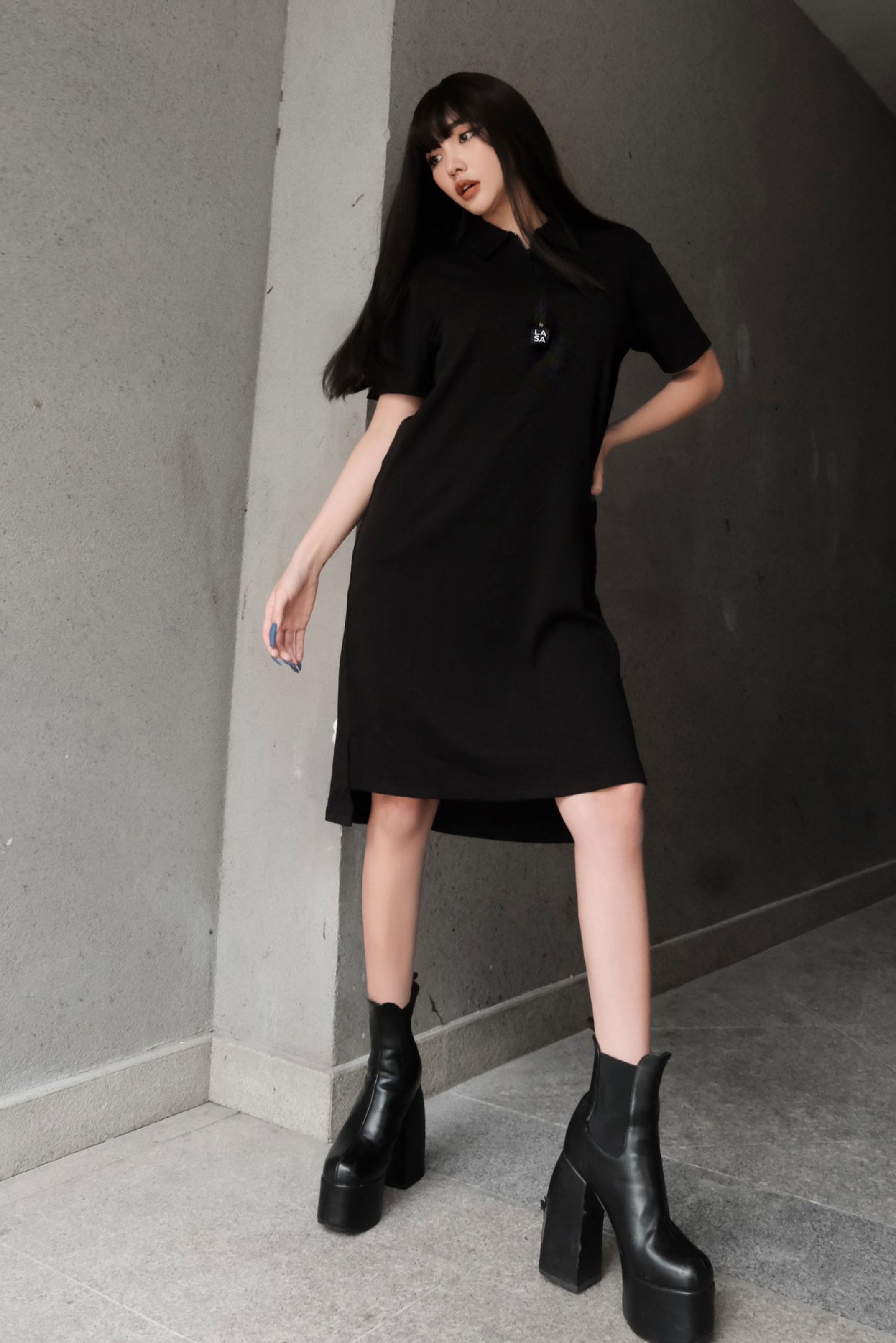 Mua tại TiktokBORIP COTTON 100% 4 CHIỀU, CHẤT DÀY MỀM, THOÁNG MÁT ĐẦM MÀU ĐEN, CỔ POLO DÂY KÉO SẮT YKK FORM SUÔN, TAY NGẮN, DÀI TRÊN GỐI ĐIỂM NHẤN TAG LOGO LAAS NGAY PHẦN DÂY KÉO