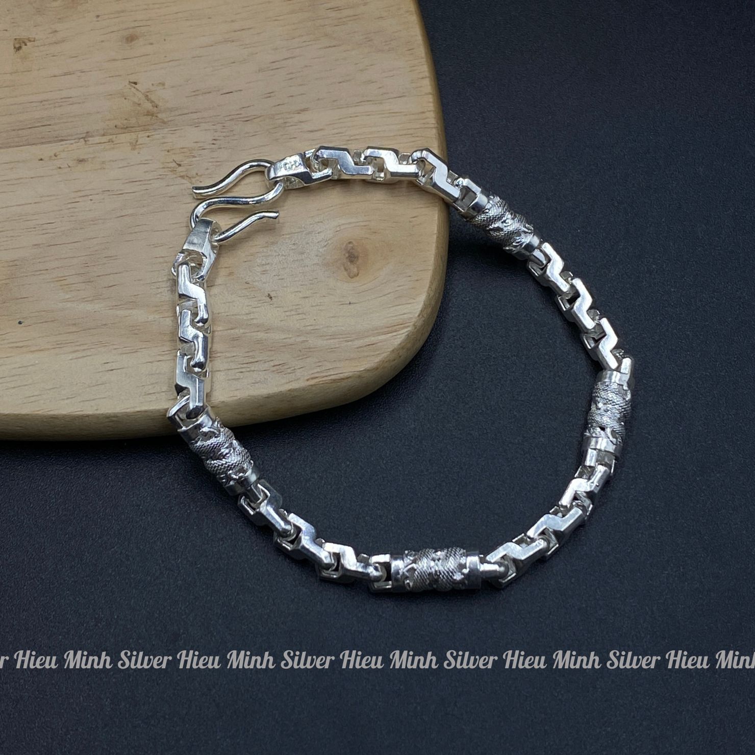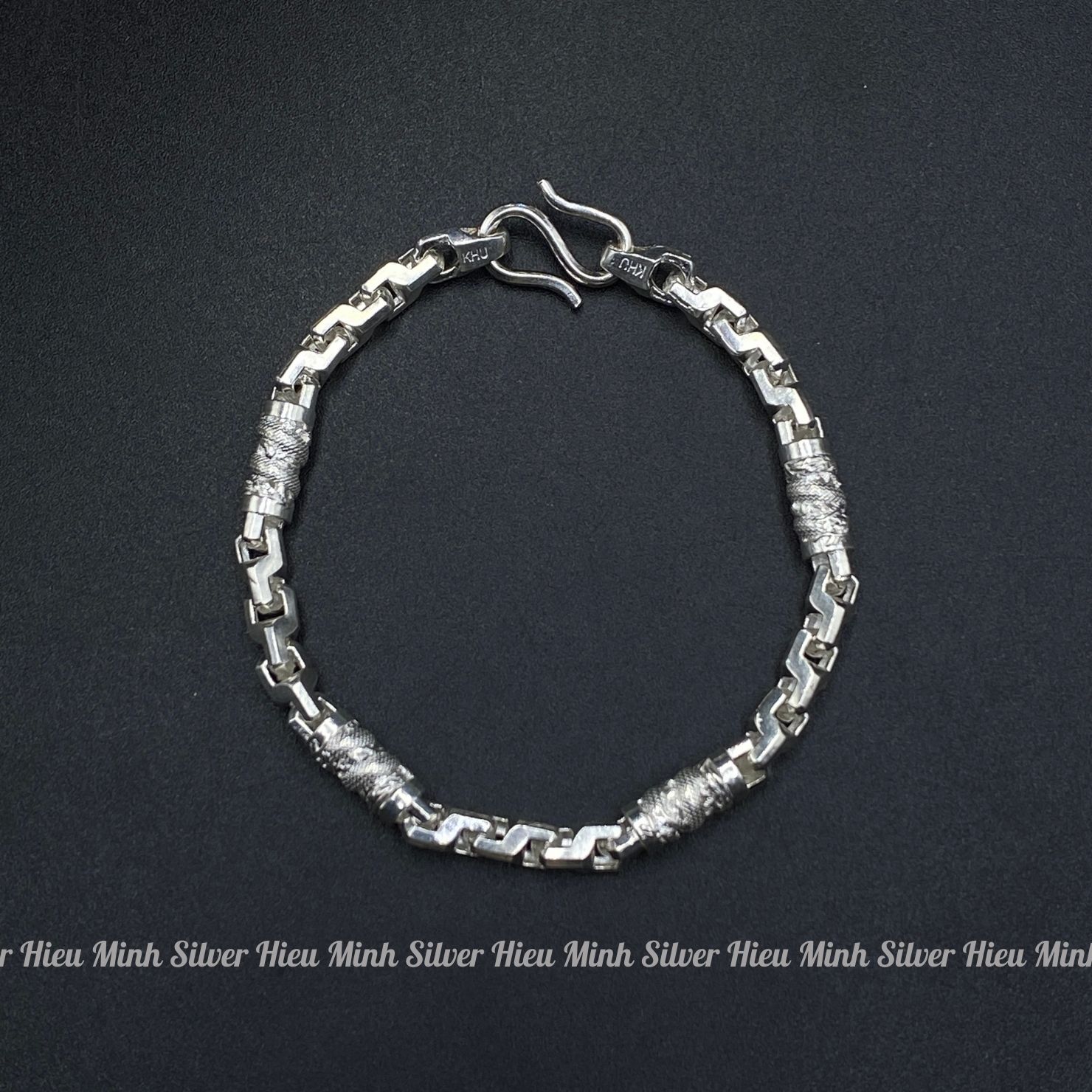 Vòng Tay Lắc Tay Nam Bạc Ta Kiểu Xích Dẹt Trạm Rồng Nổi Bạc Hiểu Minh LTN019