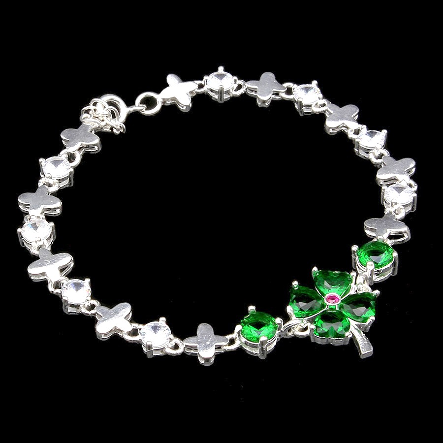 Lắc tay nữ cỏ 4 lá xanh LTU446G Bạc Hiểu Minh