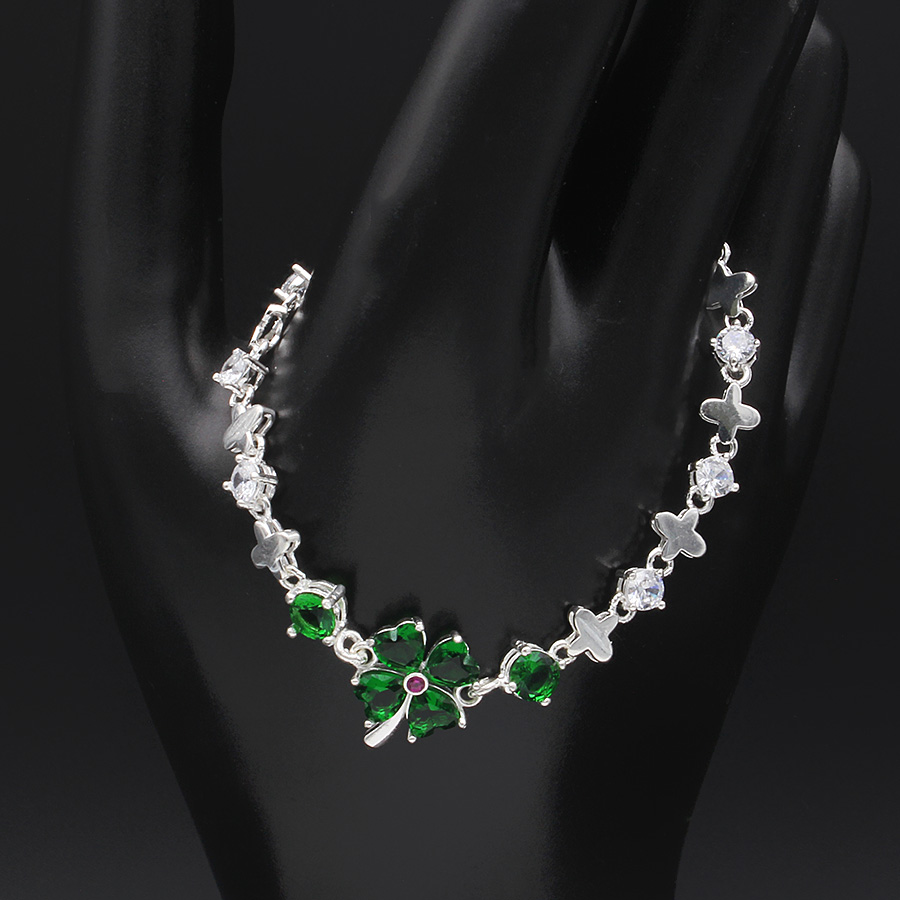 Vòng , Lắc Tay Nữ Bạc Ta Cỏ 4 Lá Đính Đá May Mắn Bạc Hiểu Minh LTU576