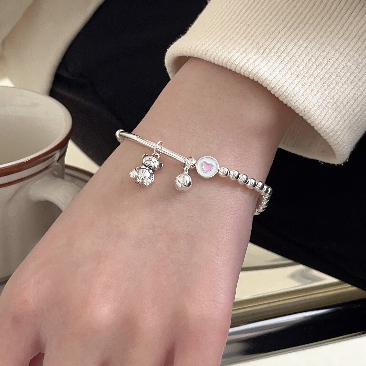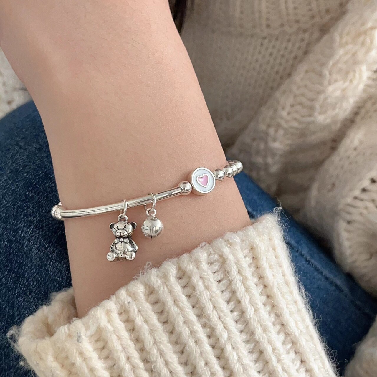 Lắc Tay Vòng Tay Nữ Bạc 925 Bi Trơn Mix Với Gấu Dễ Thương Bạc Hiểu Minh LTU574