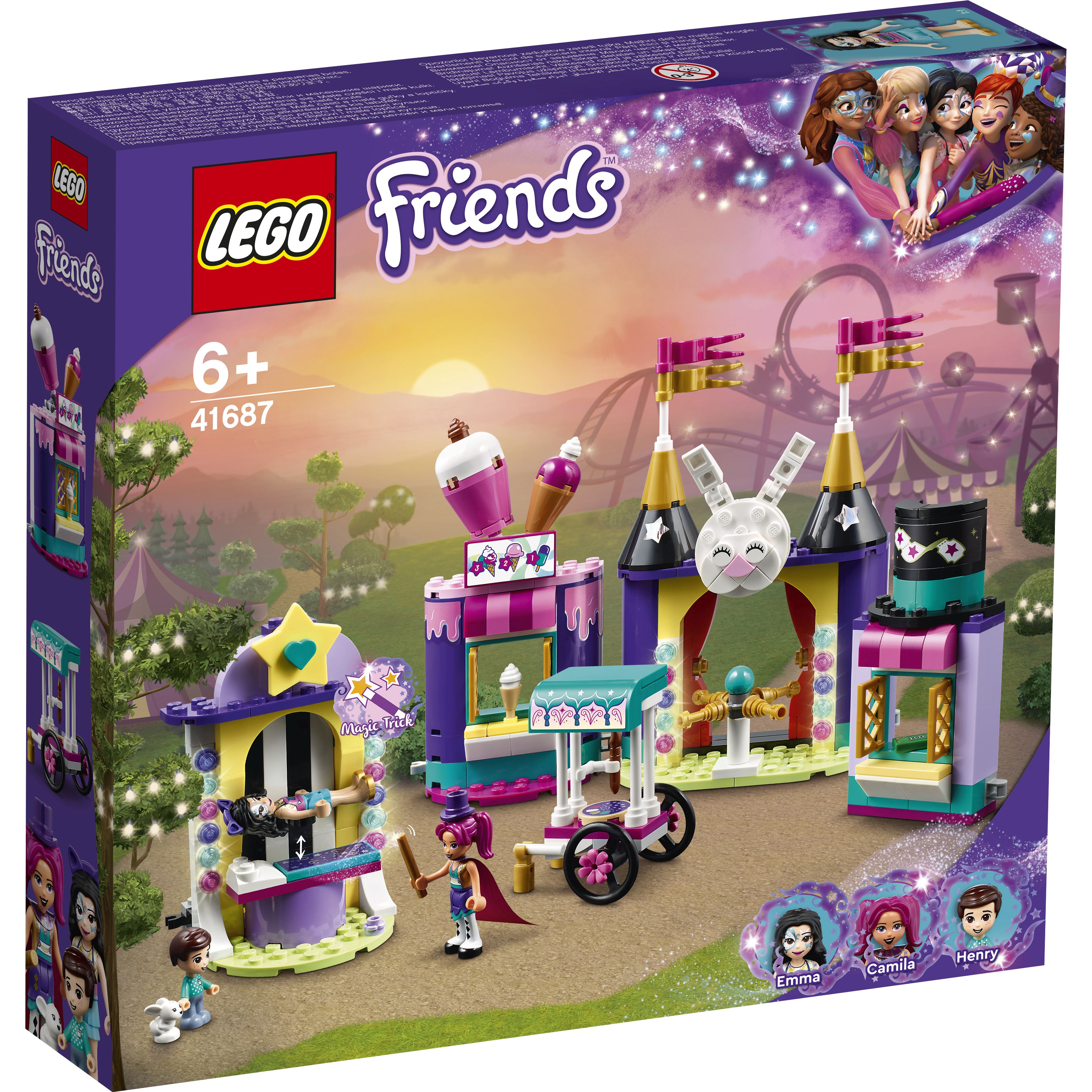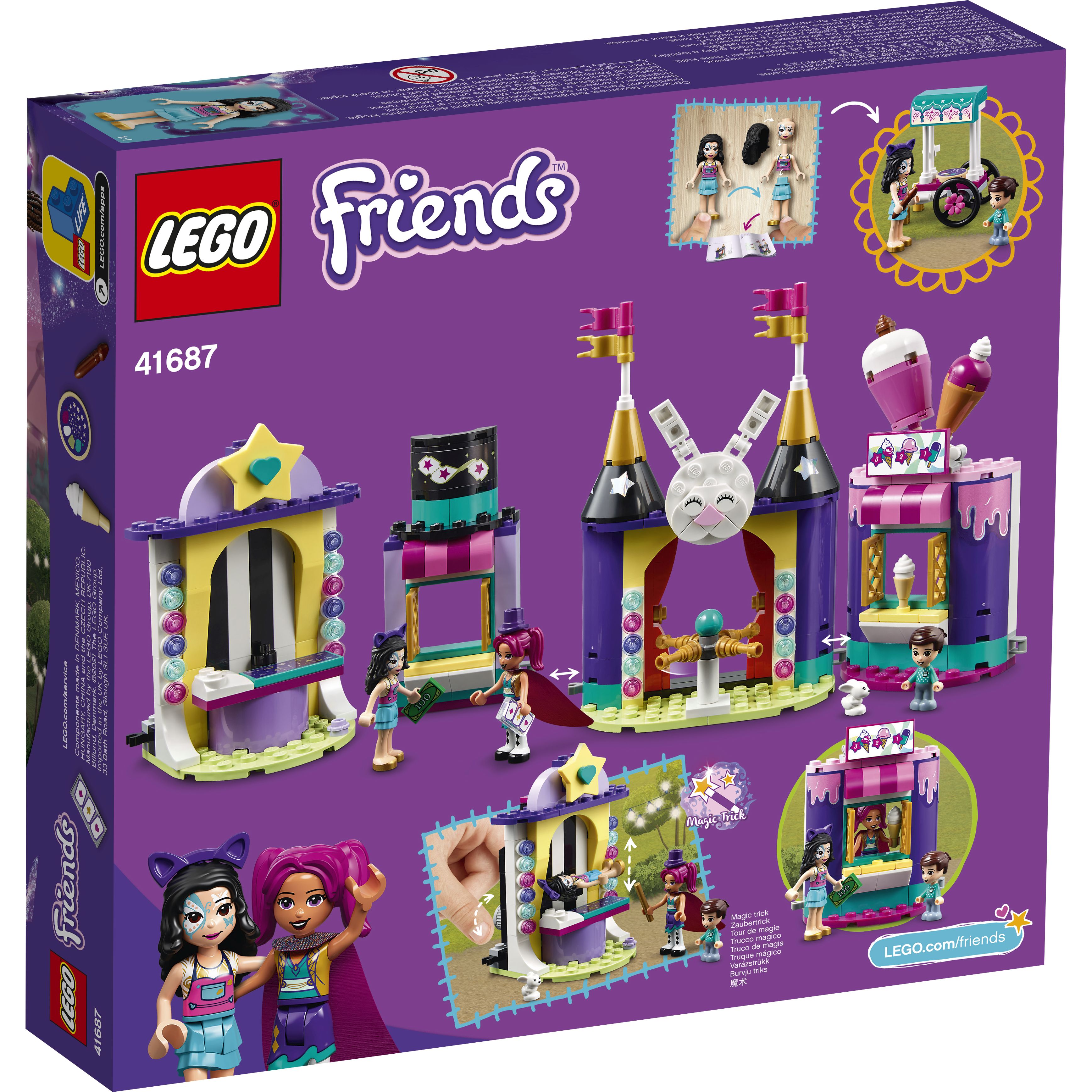 • Kết nối với các bộ LEGO Friends Magical Funfair khác - Magical Funfair Roller Coaster (41685), Magical Acrobatics (41686), Magical Caravan (41688) và Magical Ferris Wheel and Slide (41689) - để thêm phần thú vị.