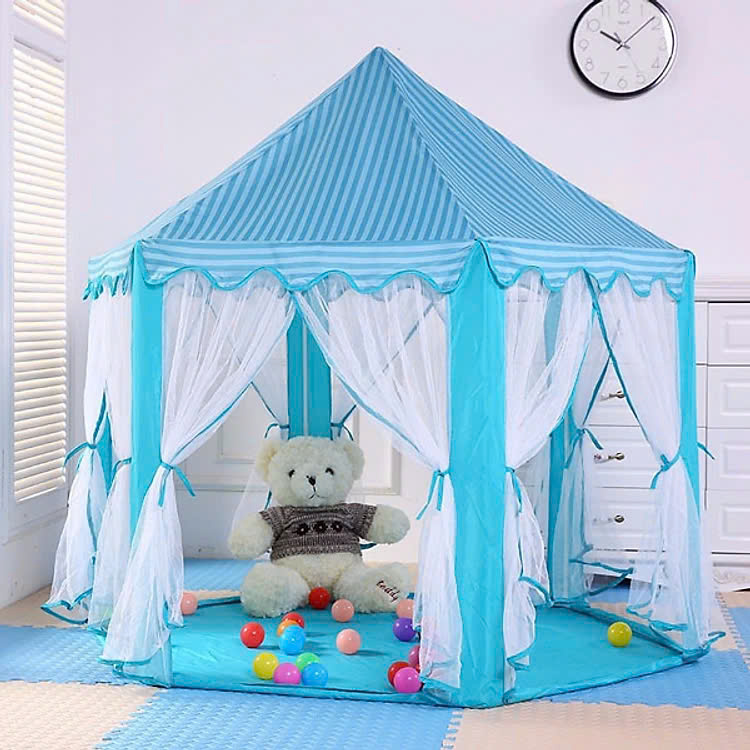 Mua tại TiktokChất liệu cao cấp, an toàn: – được làm từ chất liệu cao cấp, tuyệt đối an toàn với trẻ nhỏ khi tiếp xúc. – Khung lều được làm từ chất liệu nhựa PVC bền đẹp chắc chắc cùng tấm lót mềm mại nên mẹ an tâm khi bé chơi bên trong lều. Thiết kế xinh xắn thuận tiện: – được thiết kế theo phong cách lều ngủ của những nàng công chúa và hoàng tử trong chuyện cổ tích, với nhiều màu sắc tươi sáng cùng kiểu dáng vô cùng đáng yêu mang lại cho bé một không gian vô cùng rộng rãi và thoáng giúp bé thoải mái vui chơi cùng bạn bè và bố mẹ. – Các bộ phận của chiếc lều được tháo lắp một cách dễ dàng và nhanh chóng, giúp ba mẹ dễ dàng lắp ráp cho bé hay gấp gọn để mang theo mỗi khi bé đi dã ngoại cùng gia đình. Khung lều được thiết kế dạng hình lục giác giúp chiếc lều chắc chắn hơn không dễ dàng đổ khi gặp gió. – Sáu mặt của lều được thiết kế rèm che có tác dụng như một chiếc màn, mẹ có thể buộc gọn khi bé chơi hay thả xuống mỗi khi bé ngủ trong lều. – Ngoài ra, mẹ có thể trang trí thêm đèn nhấp nháy để cho lều của bé thêm phần lung linh và rực rỡ hơn, sẽ càng khiến cho bé thêm yêu chiếc lều dễ thương này. Thông tin sản phẩm: – Màu sắc: Sản phẩm có hai màu hồng, xanh và không bao gồm bóng. – Kích thước : 140 cm x 140 cm x 135 cm. – Cân nặng : 1,2kg.