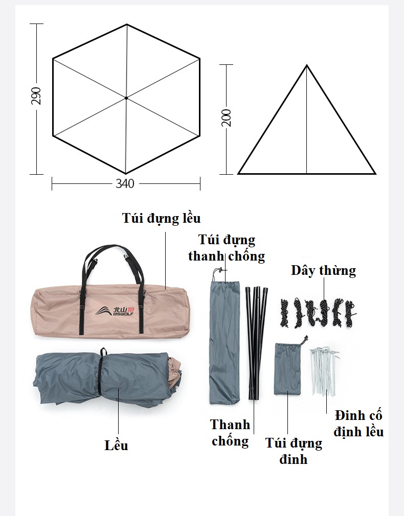 – Kích thước lều lớn, không gian rộng rãi thoải mái cho 6-8 người sử dụng.