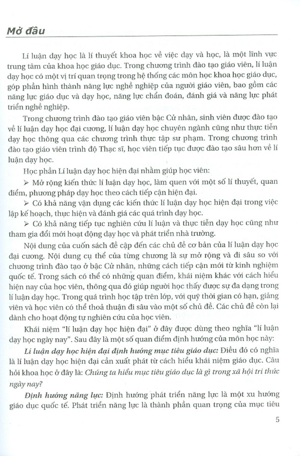 Nội dung của cuốn sách đề cập đến các chủ đề cơ bản của lí luận dạy học đại cương. Nội dung cụ thể của từng chương là sự mở rộng và đi sâu so với chương trình đào tạo ở bậc Cử nhân, những cách tiếp cận mới từ kinh nghiệm quốc tế. Trong sách có thể có những quan điểm, khái niệm khác với cách hiểu hiện nay của học viên, thông qua đó giúp người học thấy được sự đa dạng trong lí luận dạy học. Trong quá trình học tập trên lớp, với quỹ thời gian có hạn, giảng viên và học viên có thể thỏa thuận đi sâu vào một số chủ đề. Các chủ đề còn lại dành cho hoạt động tự nghiên cứu của học viên.