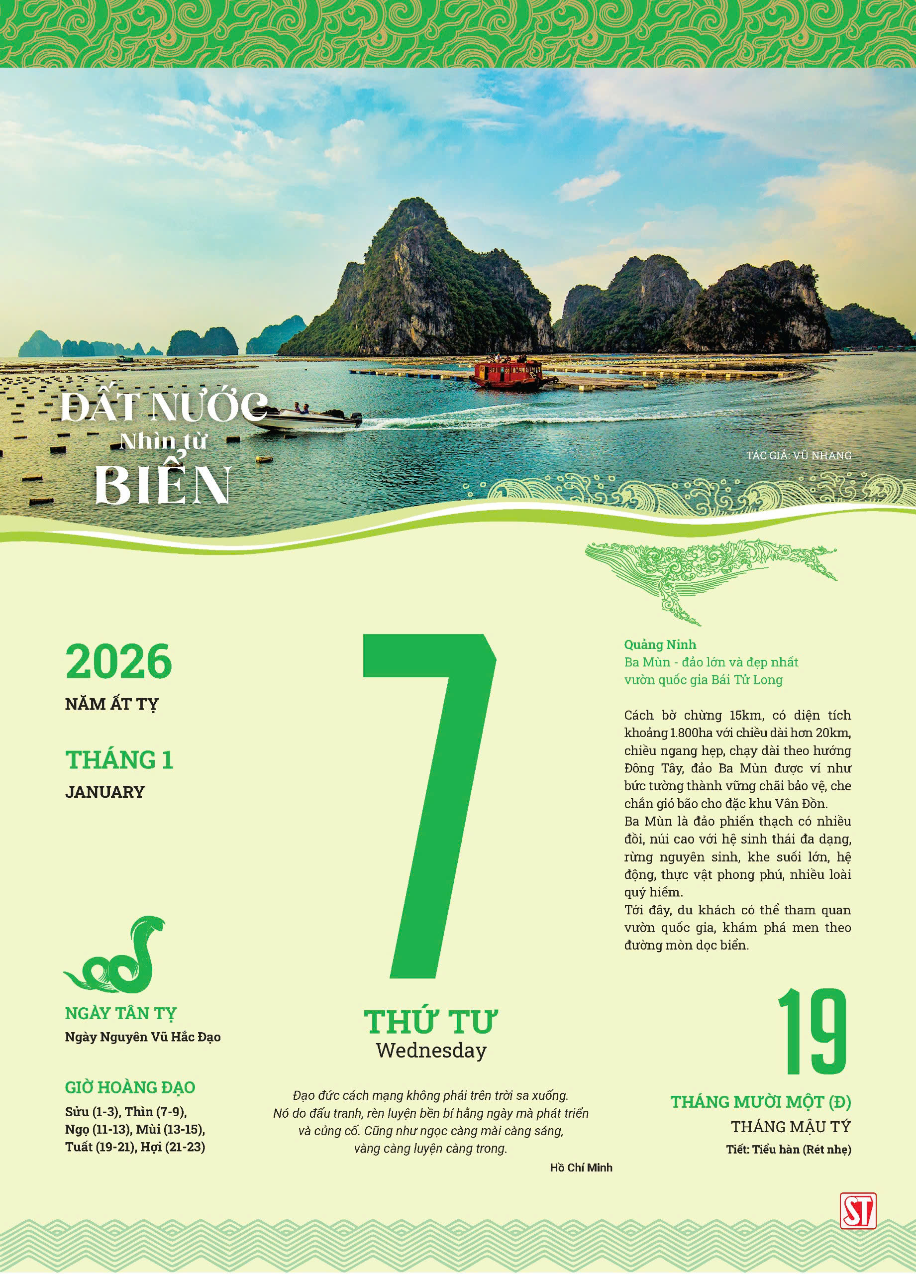 Năm 2026 – năm của đổi mới, phát triển và vươn mình ra biển lớn, bộ Lịch “Đất Nước Nhìn Từ Biển” ra đời như một lời tri ân và khẳng định tinh thần bất