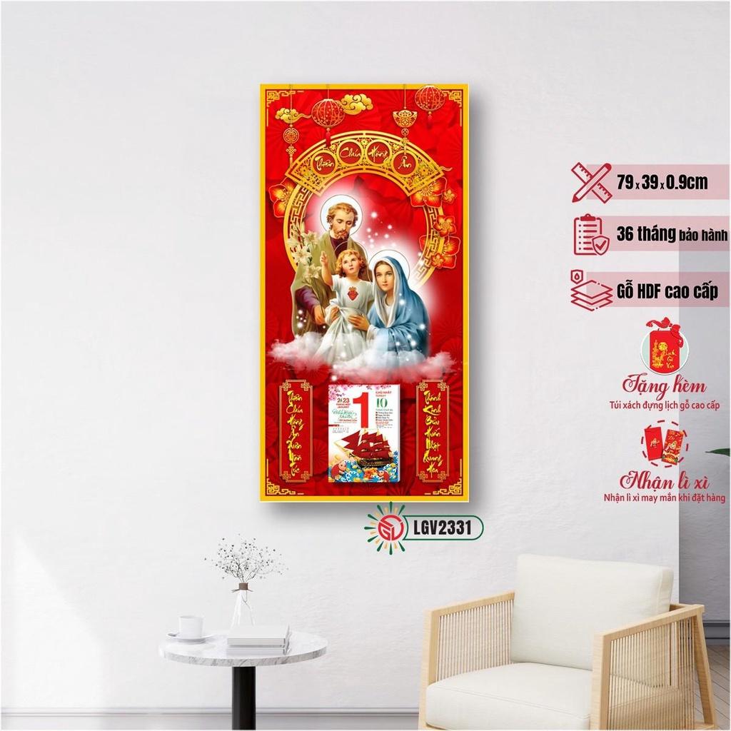 Lịch gỗ Công giáo Thánh Gia, hay còn gọi là Gia đình chúa. Là một ấn phẩm tranh lịch treo tường được xem là hình tượng chuẩn mực. THÔNG SỐ KỸ THUẬT: - Kích thước: 79cm x 39cm x 0.9cm - Ch...