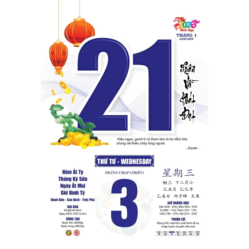 Lịch Bloc Siêu Cực Đại 2026 - Rạng Rỡ Việt Nam - Mở Cửa Tương Lai - Đại Việt Á DVA03B - Chữ Lộc - Lịch bloc giúp bạn nắm rõ ngày dương, ngày âm,