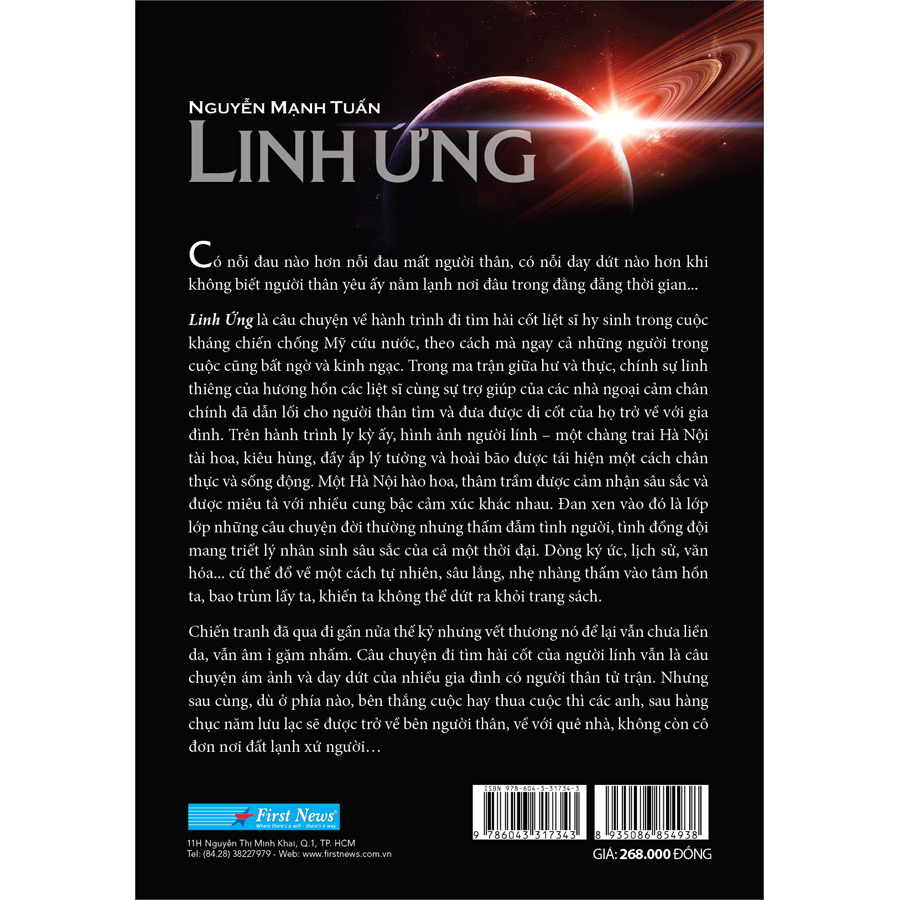 “Linh ứng” là cuốn sách kể câu chuyện có thật về hành trình của gia đình nhà văn Nguyễn Mạnh Tuấn đi tìm hài cốt liệt sĩ Nguyễn Minh Khôi - người anh trai đã hy sinh trong cuộc chiến tranh khốc liệt, với những câu chuyện ly kỳ, bí ẩn đến mức nếu không được kể lại bởi người trong cuộc, hẳn chúng ta sẽ thấy hoài nghi.