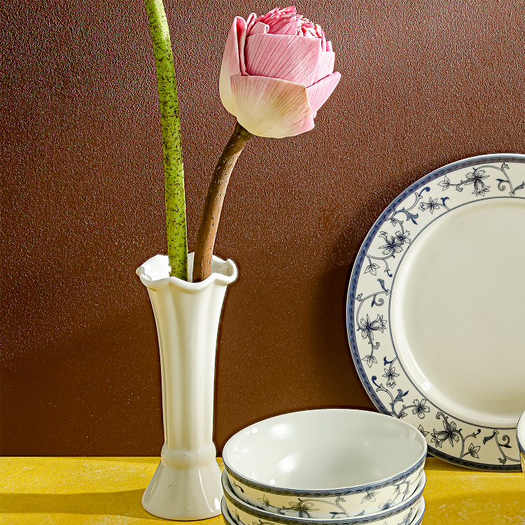 Lọ hoa bô đê sứ trắng có kích thước vừa phải, thiết kế tối giản nhưng mang lại cảm giác sang trọng, thanh cao phù hợp trong mọi không gian dù ở khách sạn, nhà hàng cao cấp hay bàn ăn, phòng khách gia đình.