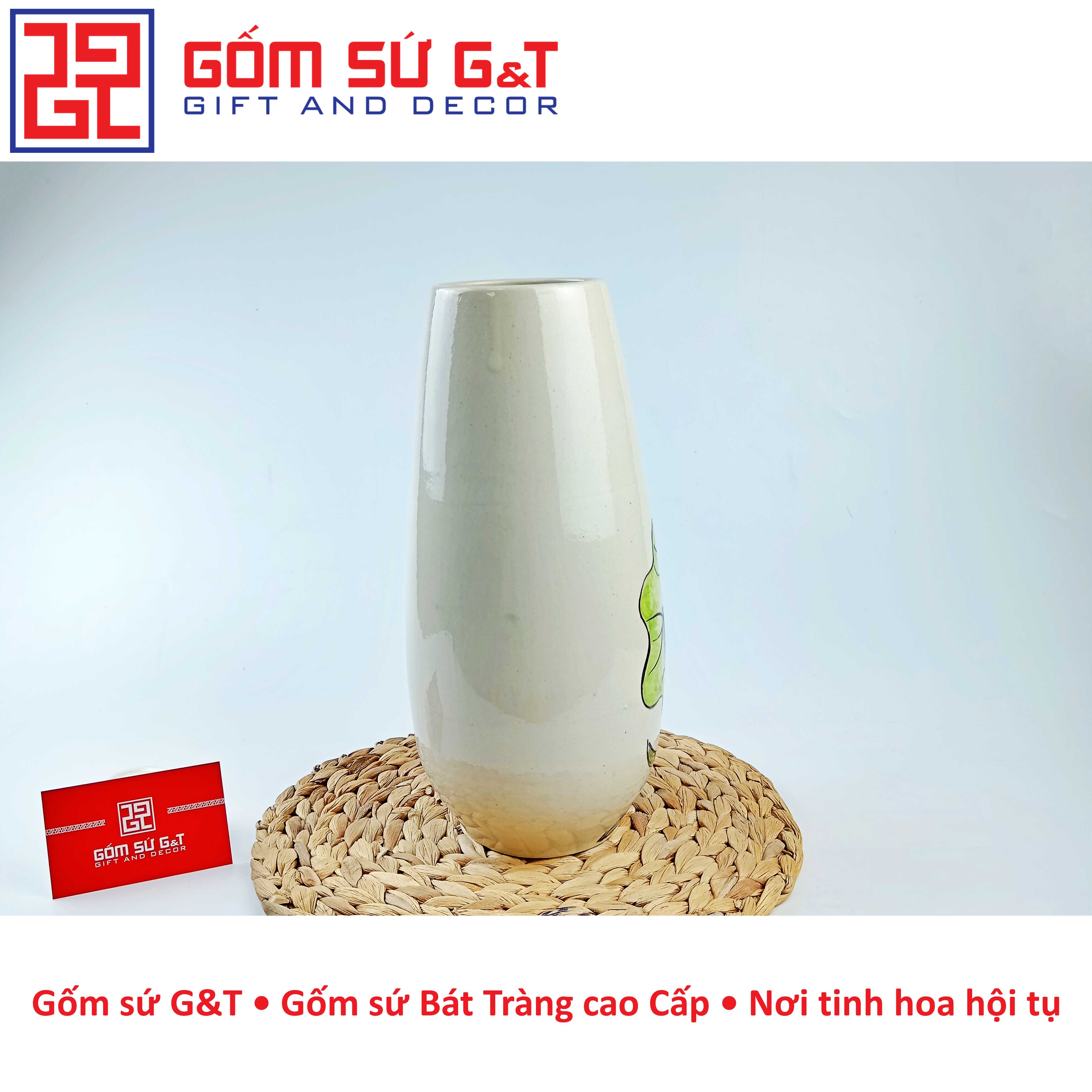 Bình hoa cao cấp Bát Tràng, hàng chuẩn loại 1, dáng chum họa tiết đắp nổi được thực hiện thủ công 100% bởi bàn tay lành nghề của các nghệ nhân làng nghề. Sản phẩm