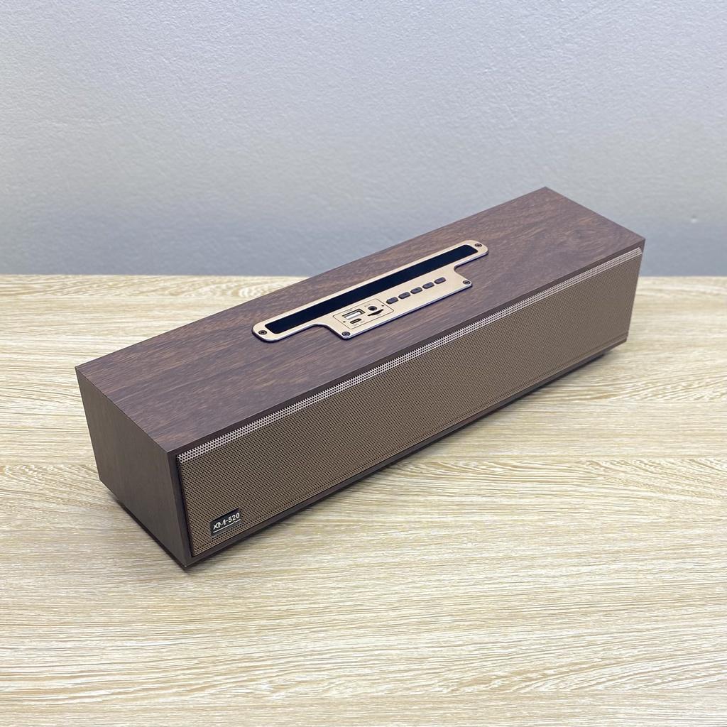 Loa Bluetooth XM-520 thiết kế sang trọng, vỏ loa gỗ thật cho độ ngân rung của âm thanh trầm trắc, âm thanh nổi sống động trung thực như rạp hát.