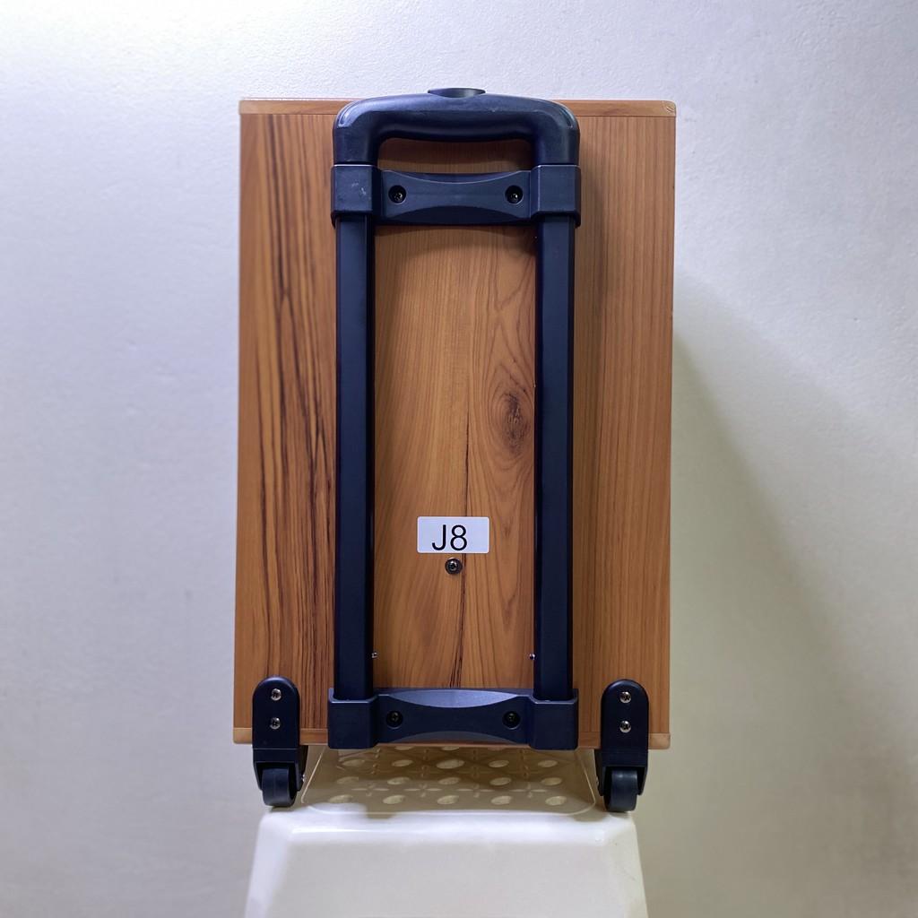 Hình thù của chiếc loa kéo di động JBZ J8 giống như 1 chiếc vali kéo với tay kéo được tích hợp ngay phía sau của loa giúp cho việc di chuyển trên mọi địa hình rất tiện lợi.