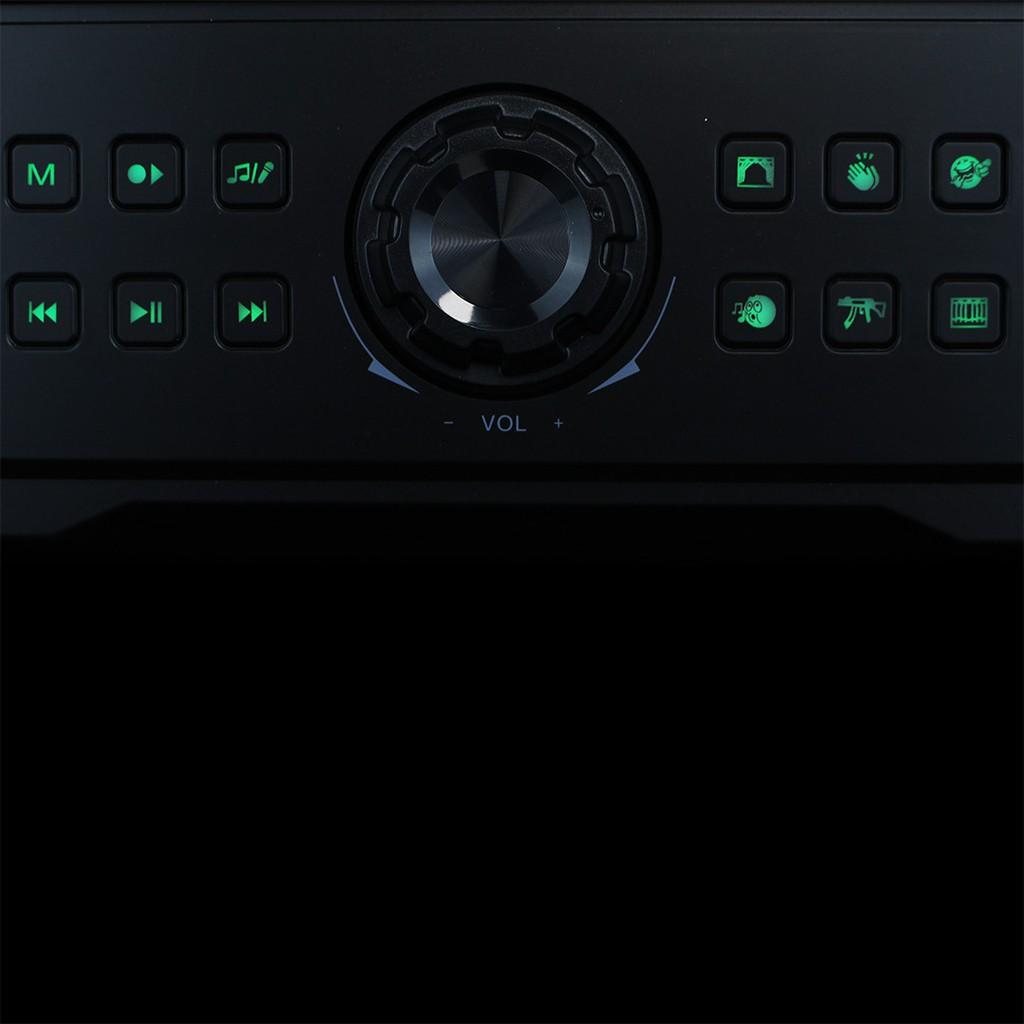 ĐẶC ĐIỂM NỔI BẬT: - Phát nhạc qua thẻ nhớ, usb, Bluetooth, cáp nối trực tiếp qua DVD, amply, Laptop, điện thoại, nghe FM - Dùng để hát karaoke gia đình trong nhà, ngoài trời,