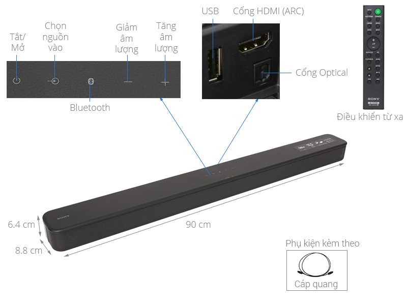 Loa soundbar Sony: đơn giản, gọn nhẹ, đầy đủ cổng kết nối (HT-S100F) • Điện máy XANH