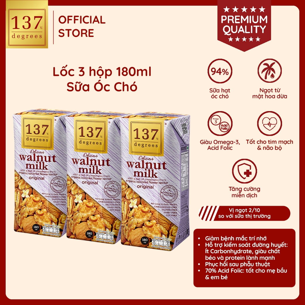 Lốc 3 hộp Sữa hạt Óc chó Nguyên chất 137 DEGREES 180mlLốc 3 hộp Sữa hạt Óc chó Nguyên chất 137 DEGREES 180mlLốc 3 hộp Sữa hạt Óc chó Nguyên chất 137 DEGREES 180mlLốc 3 hộp Sữa hạt Óc chó Nguyên chất 137 DEGREES 180mlLốc 3 hộp Sữa hạt Óc chó Nguyên chất 137 DEGREES 180ml