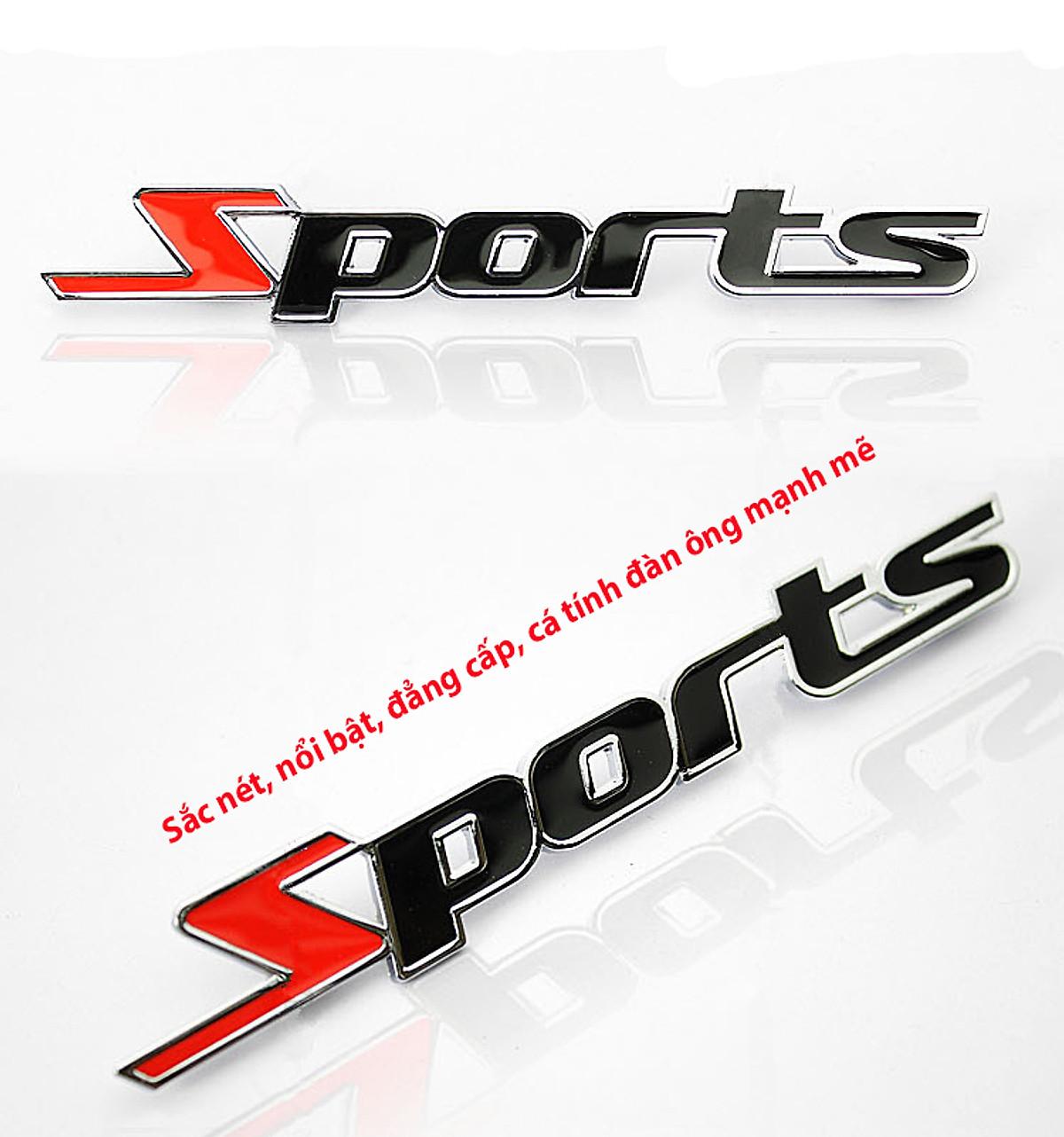 Logo SPORT kim loại chữ nổi trang trí ô tô xe máy