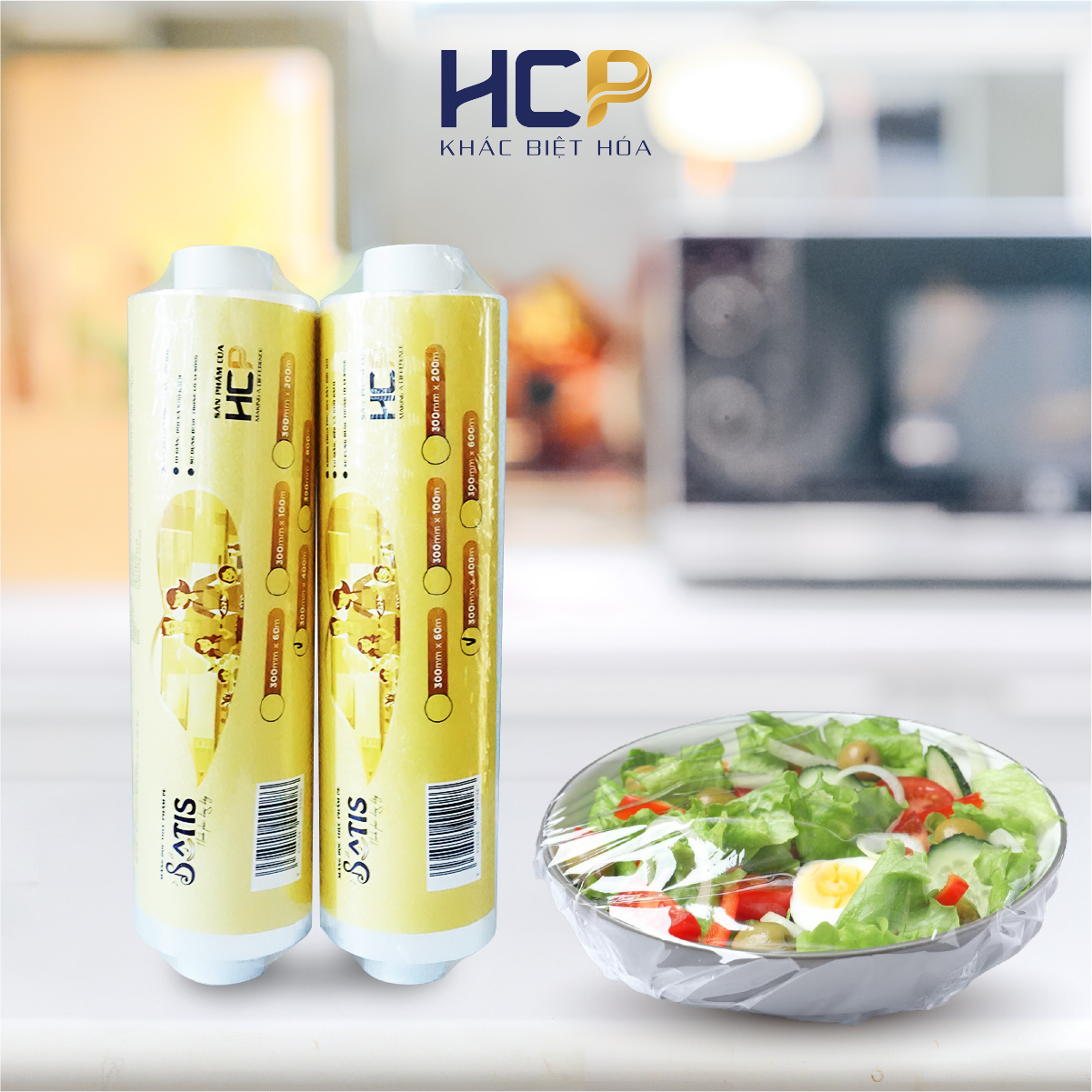 • HCP chuyên sản xuất màng căng công nghiệp, màng bọc thực phẩm PE và cung cấp các sản phẩm gia dụng khác như giấy bạc nướng, giấy thấm dầu và găng tay TPE.