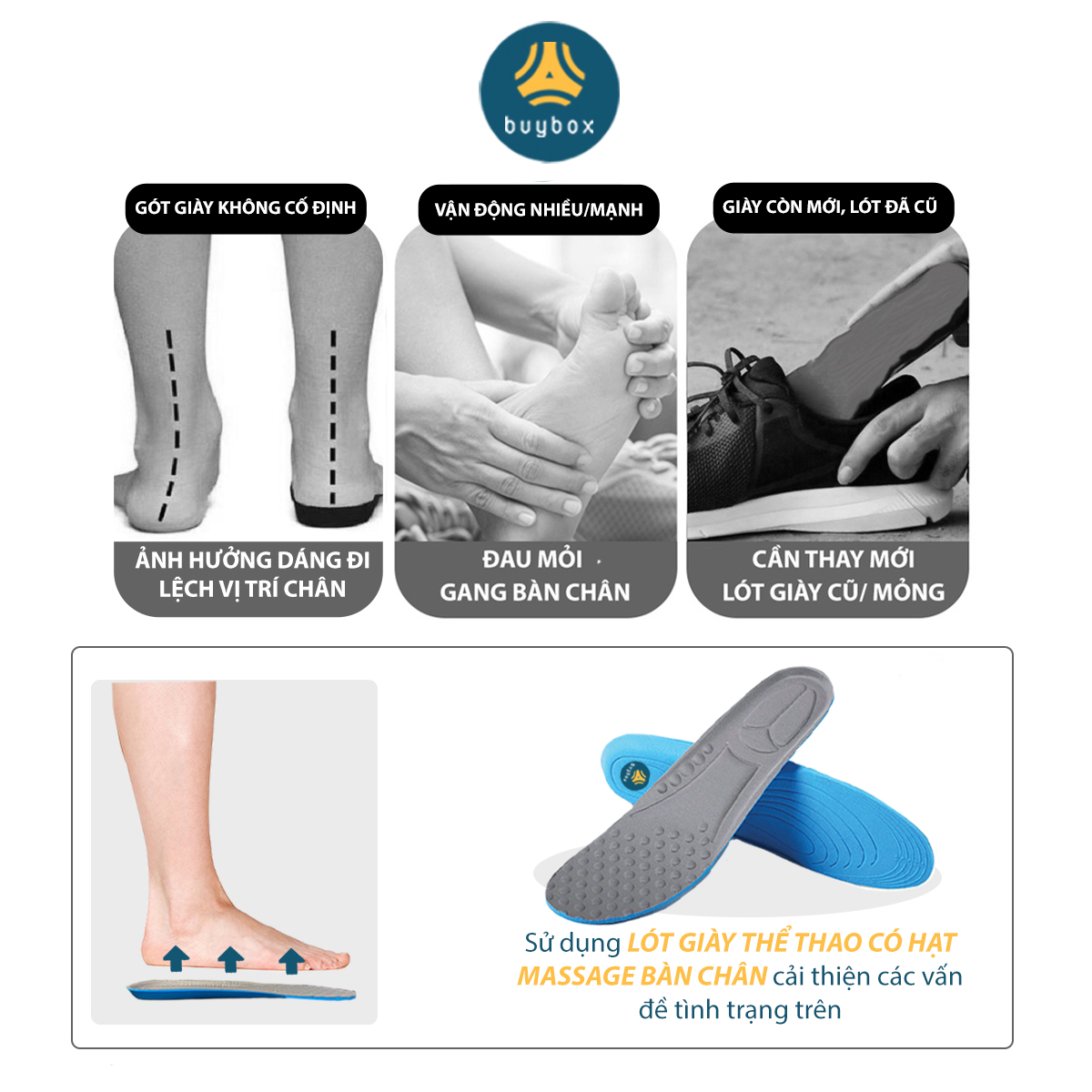 ✨Lót giày thể thao có hạt massage lòng bàn chân, thoáng khí, chất liệu mềm mại dễ dàng vận động - Buybox - BBPK228