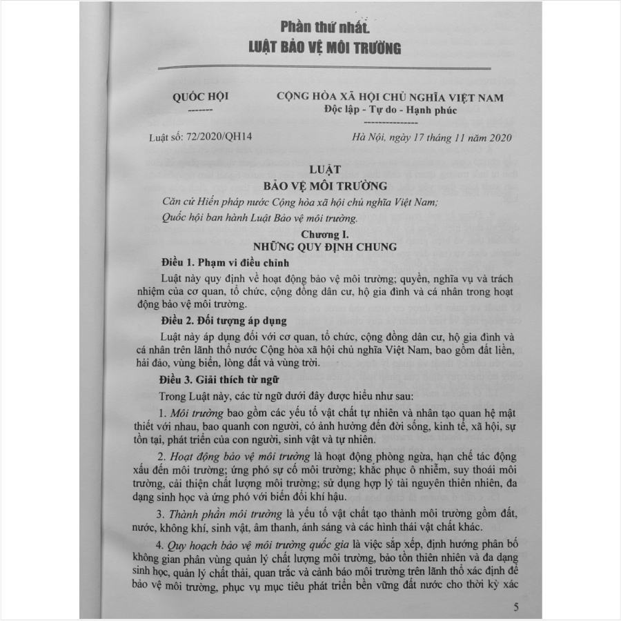 Hướng dẫn đọc, phân tích luật bảo vệ Môi trường số 72/2020/QH14