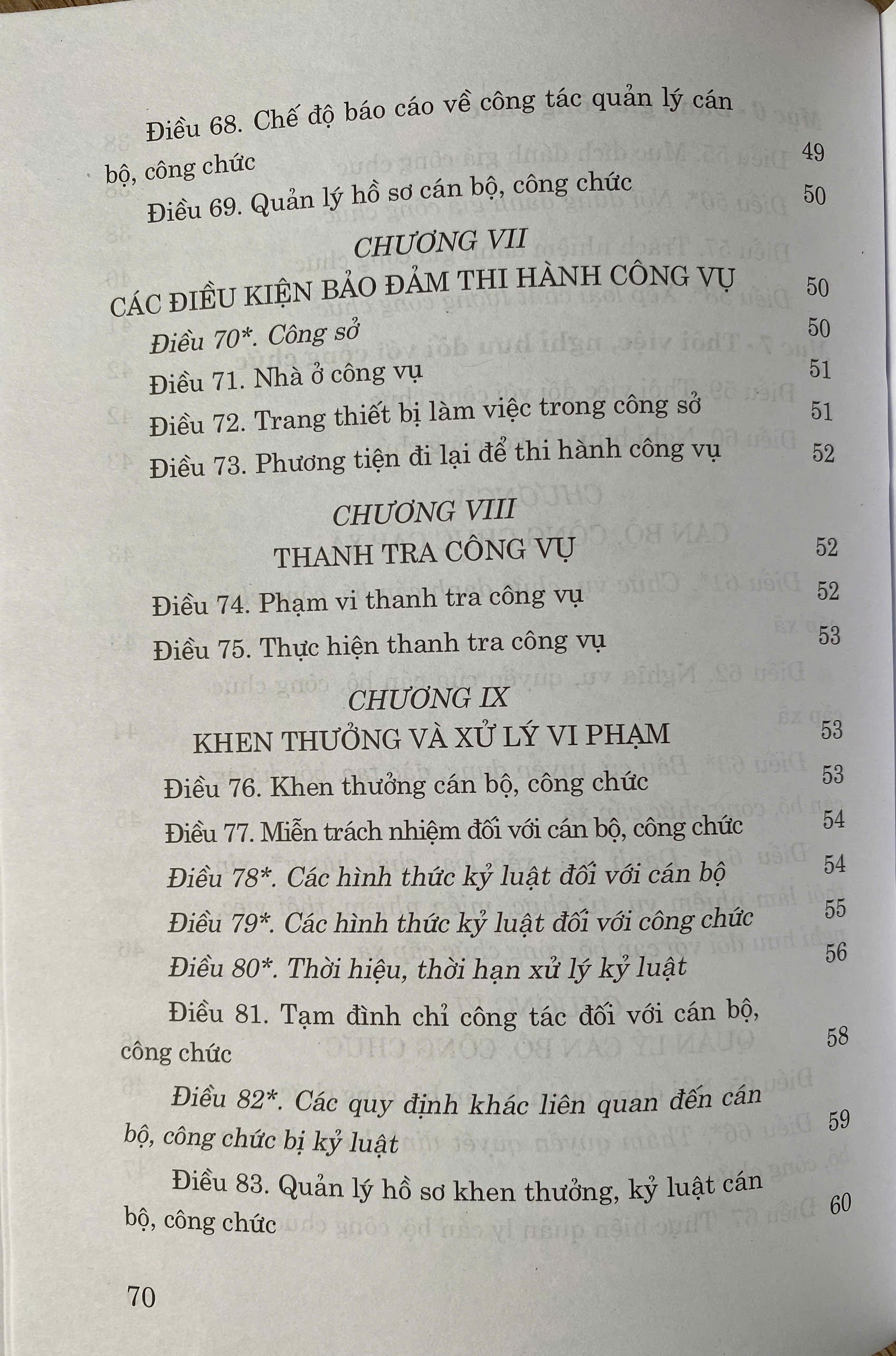 Luật Cán Bộ, Công Chức Năm 2008 ( Sửa đổi, bổ sung năm 2019 ) gồm 10 chương, 87 điều, quy định về cán bộ, công chức; bầu cử, tuyển dụng, sử dụng, quản lý cán bộ, công chức; nghĩa vụ, quyền của cán bộ, công chức và điều kiện bảo đảm thi hành công vụ.
