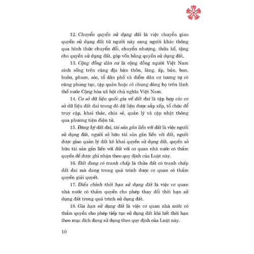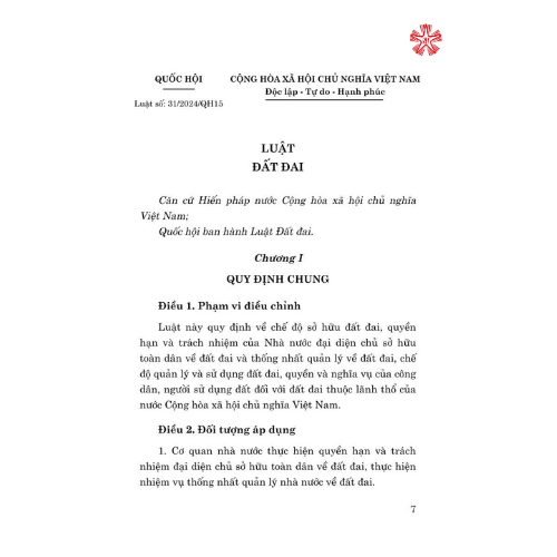 Luật Đất đai số 31/2024/QH15 được Quốc hội khóa XV thông qua ngày 18/01/2024. Luật Đất đai năm 2024 gồm 16 chương, 260 điều, trong đó sửa đổi, bổ sung 180 điều của Luật
