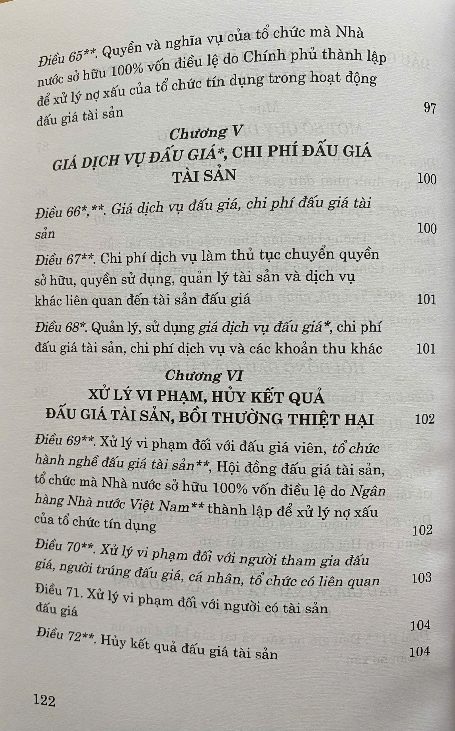Luật Đấu giá tài sản (hiện hành) gồm 8 chương, 81 điều, quy định về nguyên tắc, trình tự, thủ tục đấu giá tài sản; đấu giá viên, tổ chức đấu giá tài
