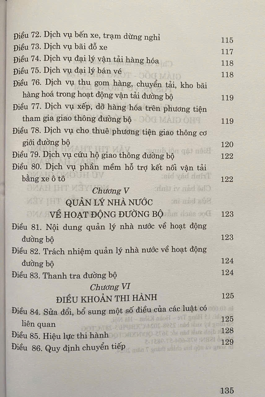 Mua tại TiktokLuật Đường Bộ số 35/2024/QH15 được Quốc hội nước Cộng hòa xã hội chủ nghĩa Việt Nam khóa XV, kỳ họp thứ 7 thông qua ngày 27 tháng 6 năm 2024 . Luật Đường bộ năm 2024 gồm 6 chương và 86 điều quy định về quy hoạch, đầu tư, xây dựng, quản lý, vận hành, khai thác, bảo trì, bảo vệ kết cấu hạ tầng đường bộ; tổ chức vận tải đường bộ và quản lý nhà nước về hoạt động đường bộ. Luật có hiệu lực áp dụng từ ngày 01 -01-2025.