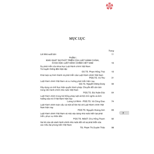 Mua tại TiktokCuốn sách Luật Hành chính Việt Nam: Từ truyền thống đến Nhà nước pháp quyền xã hội chủ nghĩa do PGS.TS. Vũ Công Giao, PGS.TS. Nguyễn Quốc Sửu, PGS.TS. Đặng Minh Tuấn (Đồng chủ biên) góp phần đáp ứng yêu cầu đó. Cuốn sách được chia thành hai phần: Phần 1 gồm một số bài viết đề cập sự phát triển của Luật Hành chính, khoa học Luật Hành chính Việt Nam từ trước tới nay, bao gồm một số vấn đề lý luận, thực tiễn đang đặt ra với sự phát triển của ngành luật này. Phần 2 gồm những bài viết đề cập nhiều nội dung của Luật Hành chính mà cần cải cách, hoàn thiện để thực hiện các mục tiêu, nhiệm vụ có liên quan trong Nghị quyết số 27-NQ/TW.