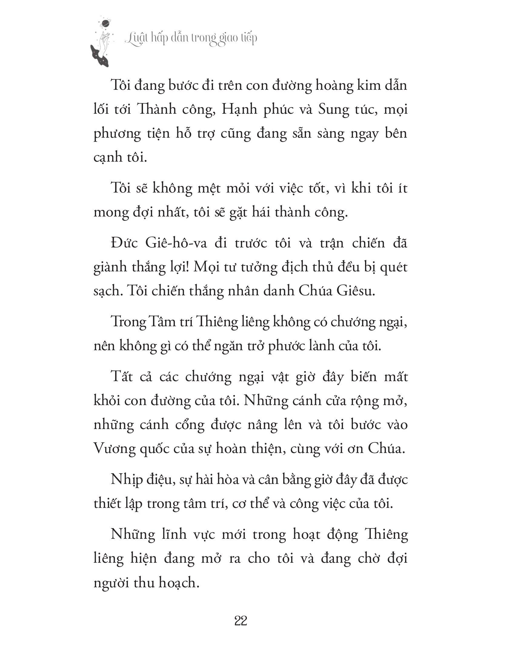 Nếu bạn nỗ lực và kiên trì, Luật hấp dẫn sẽ giúp bạn cải thiện cách giao tiếp để thu hút được tất cả những điều tích cực nhất. Đúc kết từ những lời thực hành khẳng định cùng những bài thuyết giảng từ bậc thánh nhân trong công cuộc thu hút năng lượng tích cực từ vũ trụ, cuốn sách đóng vai trò như một ngọn hải đăng soi sáng chúng ta trên con đường đi đến tiền tài, danh vọng, và thành công trong cuộc sống thông qua giao tiếp.