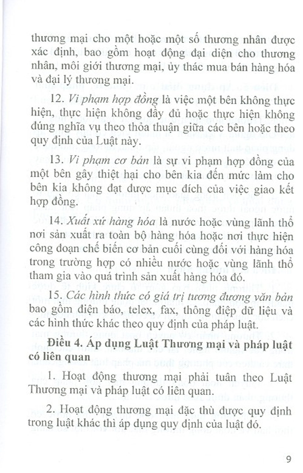 Giới thiệu toàn văn Luật Thương mại (sửa đổi năm 2017, 2019) bao gồm những qui định chung và các qui định cụ thể về mua bán hàng hoá, cung ứng dịch vụ, xúc tiến
