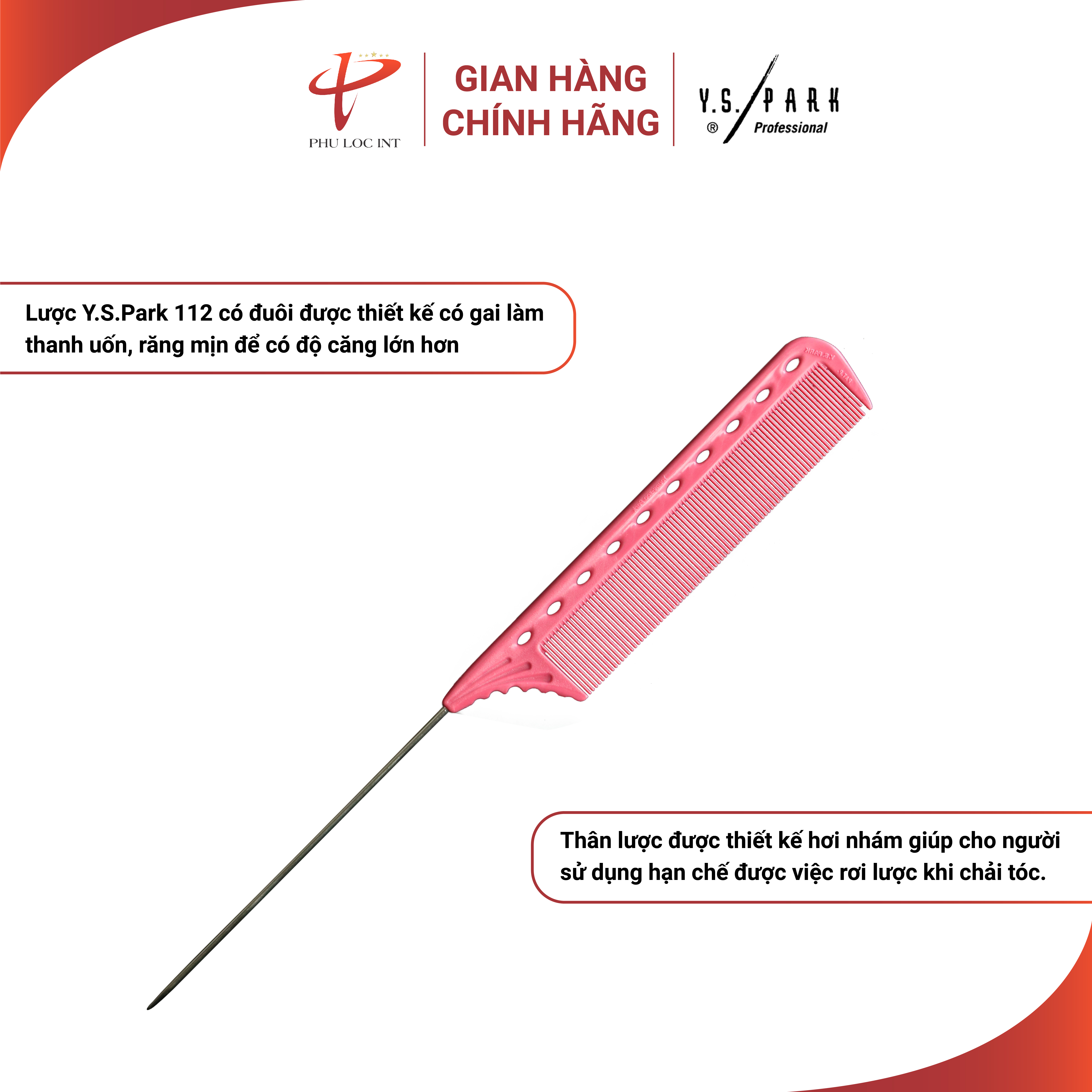 - YS Park 112 là dòng lược chải thuốc cao cấp số 1 Thế Giới được sản xuất theo công nghệ Nhật Bản, chất liệu nhựa siêu cao cấp Ultem - được sử dụng trong các bộ phận của máy bay với khả năng bắt tóc 100%, chịu nhiệt và hóa chất cực tốt