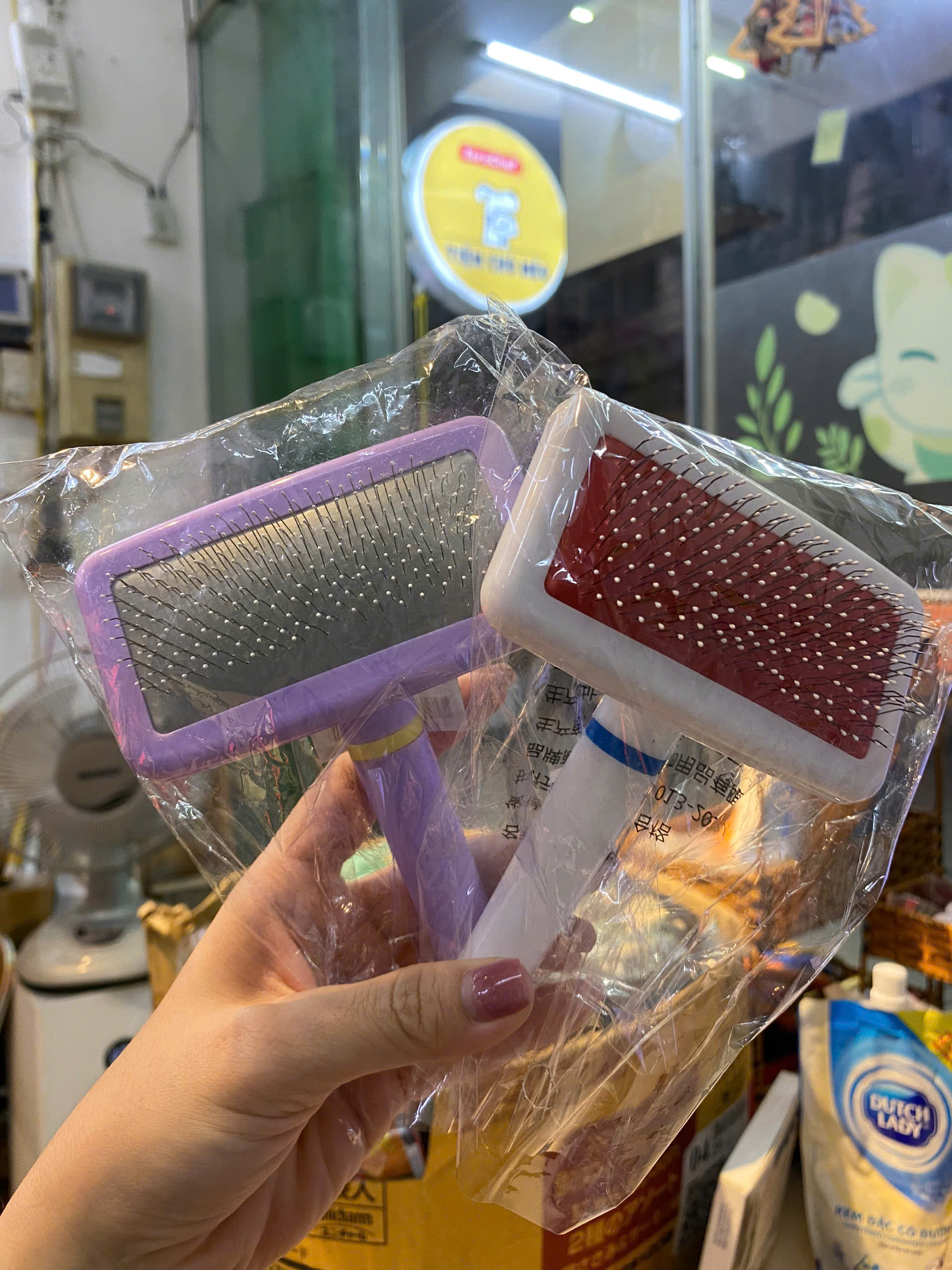 Lược Kim Chải Lông Chấm Bi Đầu Răng Lược Chó Mèo 1. THÔNG TIN SẢN PHẨM - Kích thước: dài 14cm, mặt chải rộng 9,5cm và 15.5 cm x 11.5 cm - Chất liệu: Cán nhựa, Răng lược bằng inox - Màu sắc: Như hình 2. CÔNG DỤNG - Thích hợp dùng cho cả chó mèo lông ngắn hay dài. - Loại bỏ lông rụng tối đa nhưng không làm gãy rụng lông khỏe bên ngoài. - Lược nhựa cán tròn màu trắng chải lông cho chó mèo, tay cầm chắc chắn, chất liệu răng lược không gỉ, bền. - Phần quan trọng nhất đó là đầu lược. Đầu lược được gắn những sợi kẽm nhỏ nhưng vô cùng chắc chắn, có độ cong vừa phải đổ về 1 hướng, giúp sự ma sát của lược lên bộ lông thú cưng đạt đến một lực nhất định. Phía đầu sợi kẽm được bọc lớp nhựa dẻo li ti để tránh sự trầy xước lên người thú cưng. #chó #mèo #chómèo #thúcưng #cún #chailong #thuy #thucanchomeo #trịviêm #dietve #diệtve #diệtkhuẩn #suatamchomeo #phukienthucung #phukienchomeo #luoc