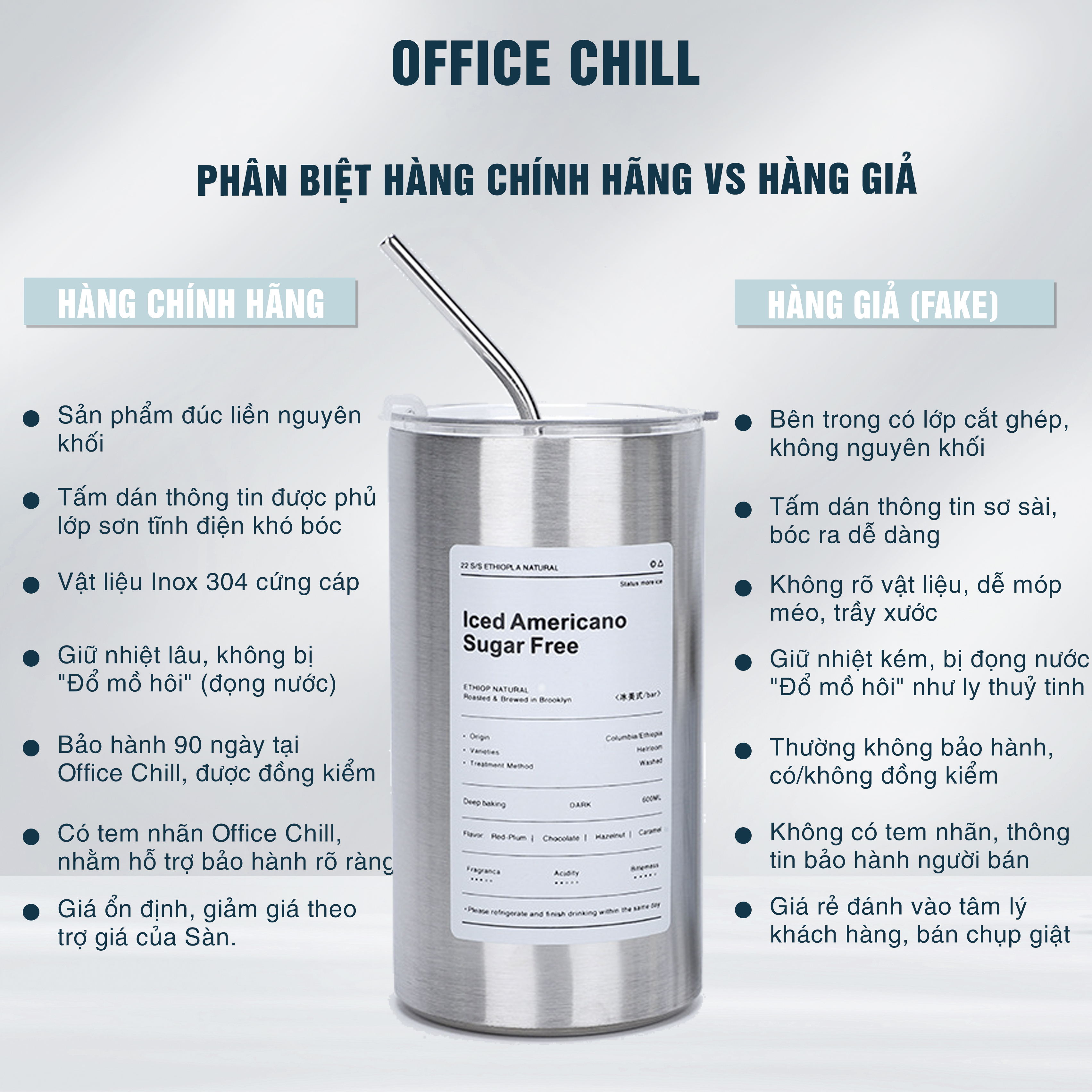 Với chất liệu Inox SUS 304 (inox 304) nên Cốc Ly Bình giữ nhiệt có độ bền cực kỳ cao và được Office Chill bảo hành 90 ngày chính hãng nên các bạn yên tâm sử dụng nha! (>.^)