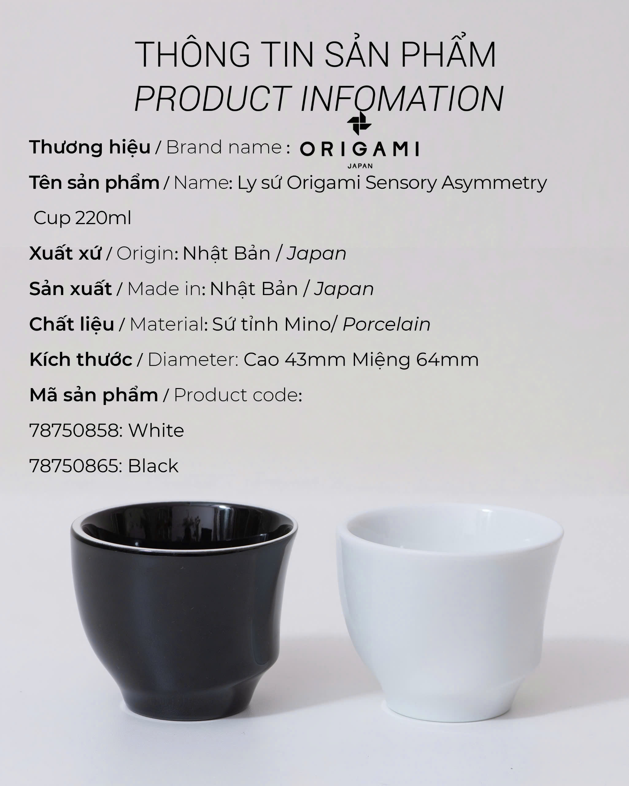 ORIGAMI Sensory Asymmetry Cup 220ml Chiều cao: 43mm Đường kính miệng (lòng trong): 64mm Dung tích: 220ml