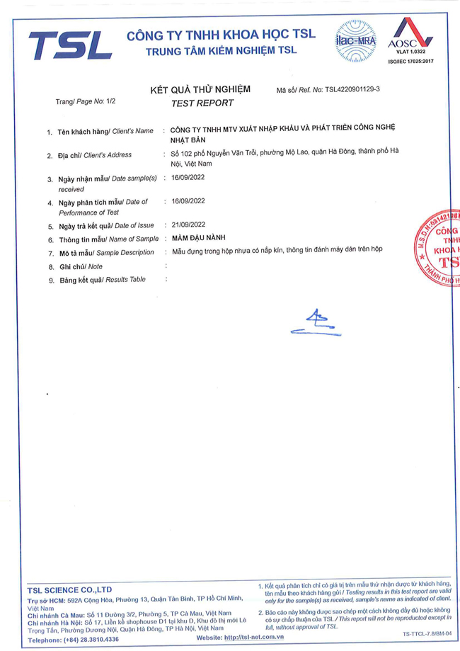Khối lượng tịnh: 150g. THÀNH PHẦN: - 100% Mầm đậu nành tự nhiên. HƯỚNG DẪN SỬ DỤNG: - Lấy 10 – 20g bột mầm đậu nành (tương đương 2 – 4 thìa cà phê) pha